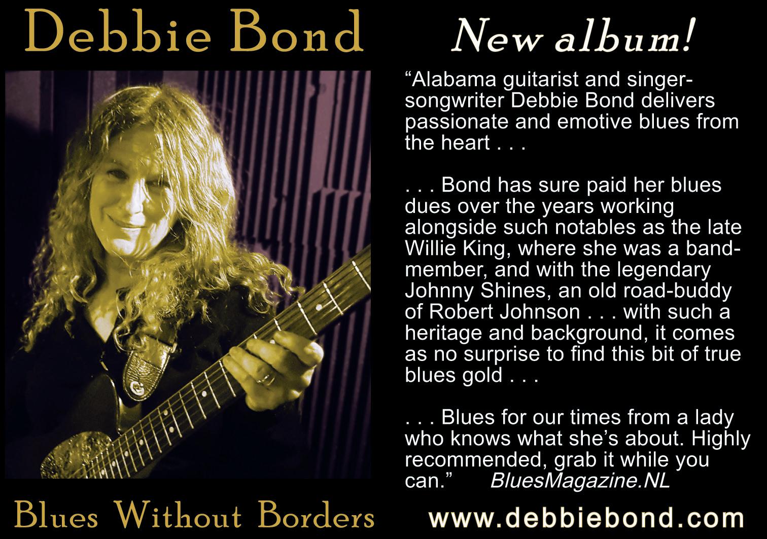 During the last year, I’ve been virtually trekking the globe whilst catching up with blues artists on all four corners of the planet. I guess you could say this body of work embraces the concept of “Blues Without Borders”, which ironically happens to be the title of Debbie Bond’s forthcoming album.