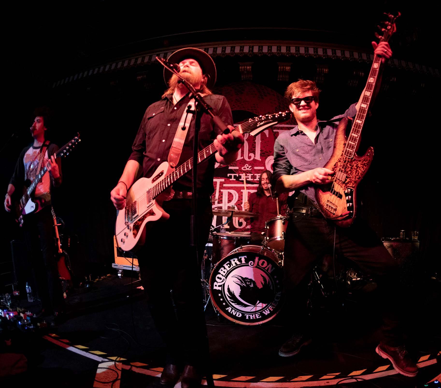 fingerpicking and gravelly, impassioned vocals take centre stage, like the opener, Daylight I Will Find You. Tracks like Howlin’, Belfast Blues and the broody, Buried In The Hail are drenched in emotional depth, their melodies weaving stories of longing and resilience. Unhinged, brings a rocky groove and riff of its own, bass player Ben Graham and drummer Aaron McLaughlin are the perfect rhythm section, and they all have that intrinsic chemistry on stage that connects with the audience making these live events special. They unleash scorching electric blues swagger on numbers like, Lefty 2 Guns and 12 Gauge, that draw Dom to be