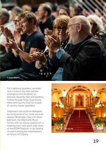 For traditional grandeur, consider Hull’s historic City Hall and the prestigious Hull Guildhall, or discover Sewerby Hall and Gardens, Tickton Grange Hotel, Cave Castle Hotel and Country Club for a taste of country house splendour. Organisers can surprise delegates by using some of our more unusual spaces: Bridlington Spa’s Art Deco ballroom, the Albemarle Music Centre with its conical auditorium, a meeting room with pitch-side views at the KCOM Stadium, or by holding an event among the masterpieces at Ferens Art Gallery.