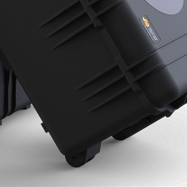 Protection against shocks and drops. Wheels.