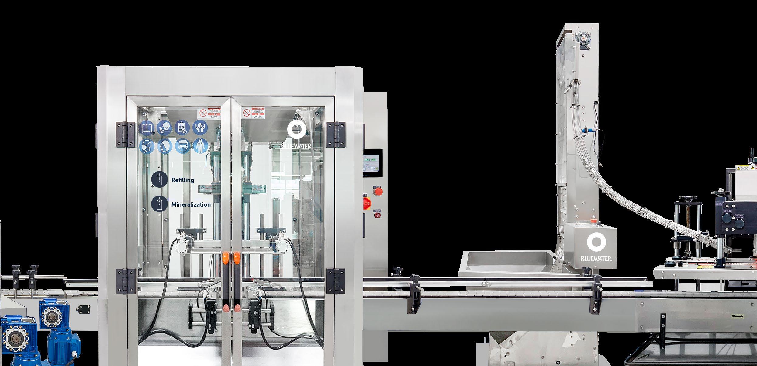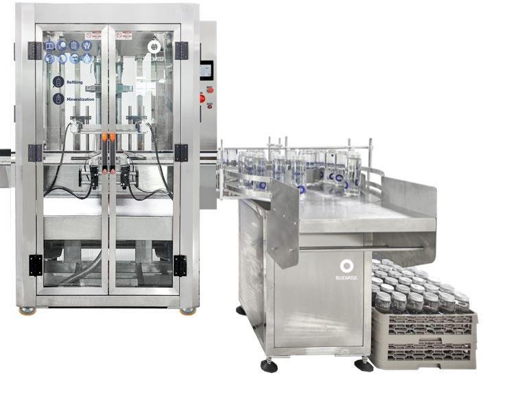 This fully automated system handles cap screwing and labeling effortlessly, ensuring efficiency at every step. With a large capacity of up to 412 fills per hour (500 mL), it’s designed to meet the demands of highvolume operations. Equipped with essential features like a loading unit, mineralizer, off-loading unit, bottle washer, drying & sterilizing unit, cap screwing unit, and labeling machine, the system ensures seamless production from start to finish. Upgrade your beverage service with precision and ease with Hotel Station 1™ Automated.