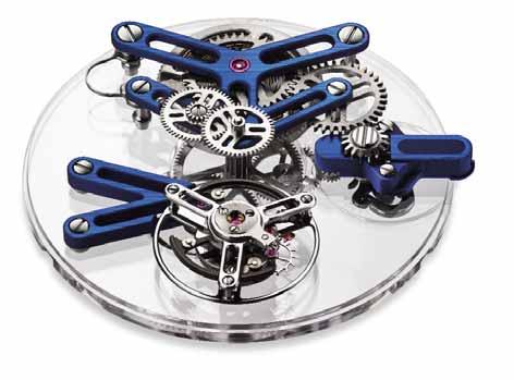 Aufgrund der strengen Prinzipien der kraftübertragung zählen die Zahnräder und Triebe des Räderwerks zu den am wenigsten von radikalen Innovationen betroffenen Bestandteilen der mechanischen Armbanduhr. das Hauptaugenmerk wurde hier auf die kontinuierliche Verminderung des Spiels im Räderwerk durch eine Optimierung der Verzahnung von Flügeln und Zähnen gelegt. 2004 stellte TAG Heuer die Monaco V4 vor, eine Uhr mit einem ganz neuen Ansatz der kraftübertragung. die V4, die ursprünglich nur eine konzeptuhr war und erst später in die Produktion genommen wurde, ist mit einer riemengetriebenen kraftübertragung ausgestattet. das aus fünf Rädern bestehende Räderwerk ist untereinander mit MikroZahnriemen verbunden. diese filigranen Riemen sind an der dünnsten Stelle lediglich 0,07 mm stark. das System ermöglicht eine unabhängige Positionierung der Räder ohne traditionelle Verzahnung – und mit dem zusätzlichen fünften Rad, das sich zwischen dem Sekunden und dem Hemmungsrad befindet, ist sie eine der wenigen Uhren, deren Räderwerk spektakulärer ist als die Hemmung.