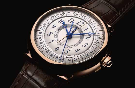 RECHTS UND GEGENÜBER: Besonders gelungen ist die Art der Anzeige von Sonnenwende, Tag- und Nachtgleiche und Zeitgleichung auf einer einzigen rotierenden Scheibe am Gehäuseboden neben der digitalen Jahresanzeige. Wirklich beeindruckend ist das, was sich darunter verbirgt. Die gesamten Kalendernocken, auch der für die Zeitgleichung zuständige, sind coaxial in einem Modul zusammengefasst, das Greubel Forsey als „computeur mécanique“ bezeichnet. Dies spart nicht nur Platz, sondern bringt auch eine außergewöhnlich leichte Einstellbarkeit mit sich, ohne dass der Mechanismus überlastet wird.