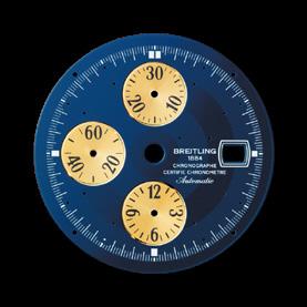 Wings-and anchor logo with BREITLING, no lumed dot on each side of the 12 o’clock index, larger subdials delete the 9 index, “Swiss Made” inside bottom subdial. Also produced as Frecce Tricolori version. Later, 1884 added beneath BREITLING. Mark IIA gained subdial rings.