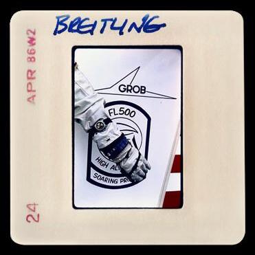 Promotional slides from the FL500 project, a NASA-assisted attempt to set a new world record for high-altitude glider flying. It was the Chronomat’s first sponsorship tie up. Pilot Bruce Brosi is pictured top left.