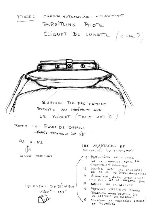 Schneider’s drawings of the Chronomat reveal just how much the design—and even the name—was in flux leading up to the November 1982 deadline.