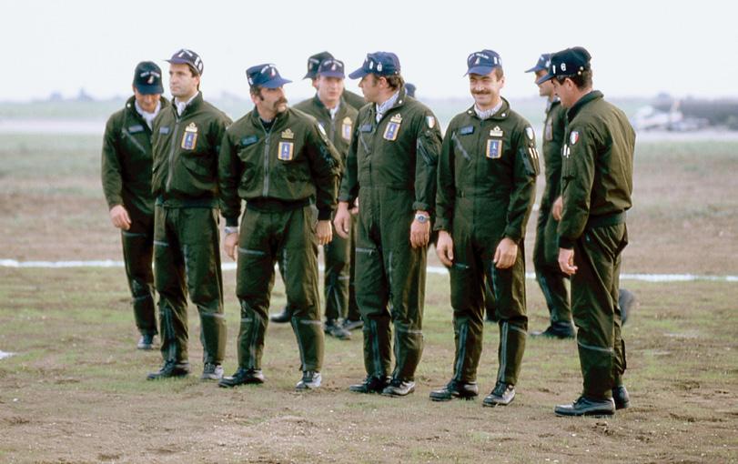 November 1984. The earliest known photo of Frecce Tricolori pilots wearing their exclusive ref. 80950 chronographs.