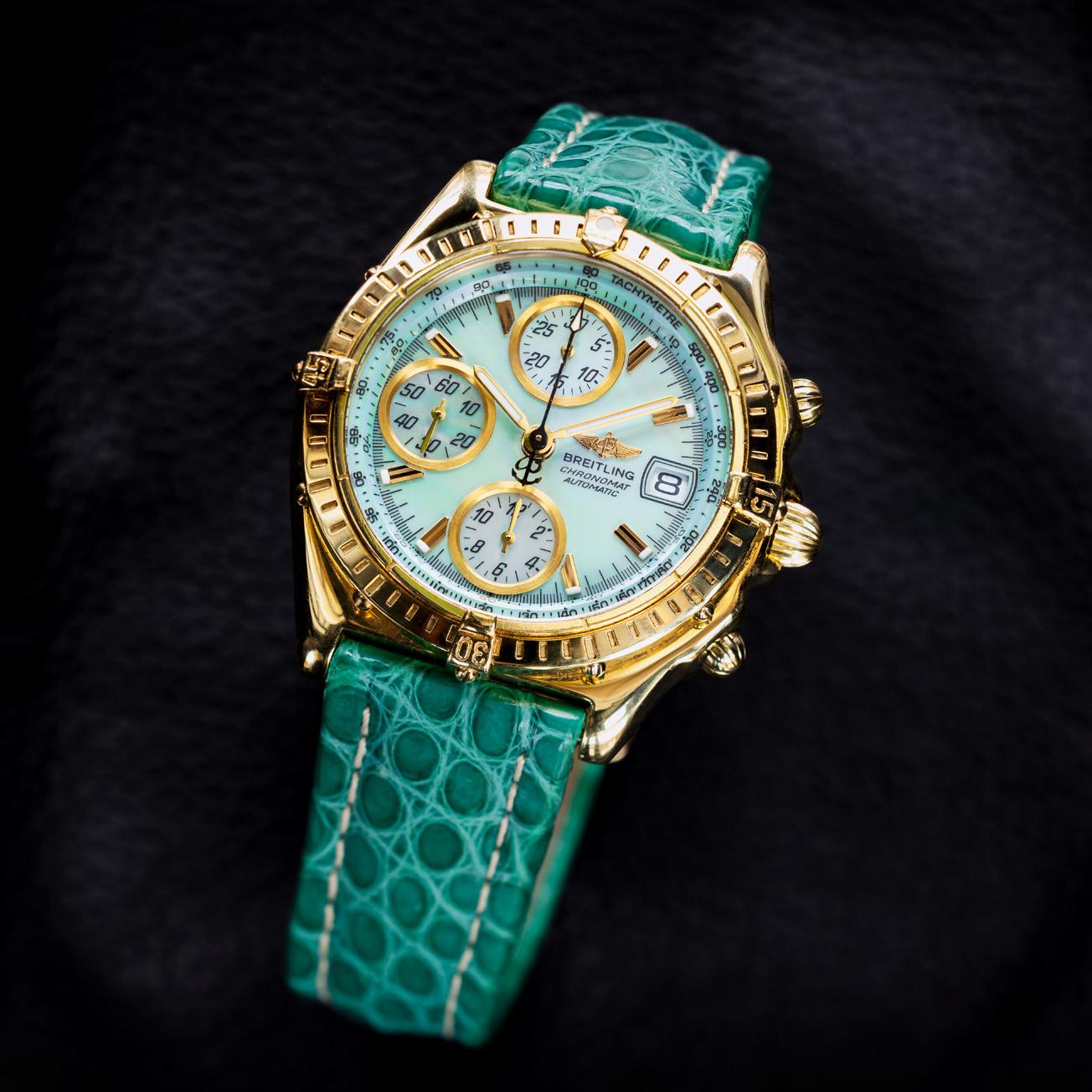 Around the Mediterranean, demand followed the travels of the fashionable jet set. When the managers of an English high-street jewelry chain attended a sales conference in Mallorca in 1989, they gazed with amazement at the Chronomats in the windows of highend jewelers. One of them was watch specialist Jonathan Scatchard “They had black dials, with brown straps,” he recalled. “And we said, ‘Nobody’s ever done that before!’”