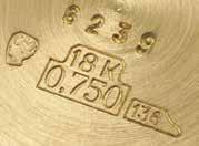 • 18K 0,750 (or 750 in late production): this corresponds to the number of carats and the ratio of pure gold.