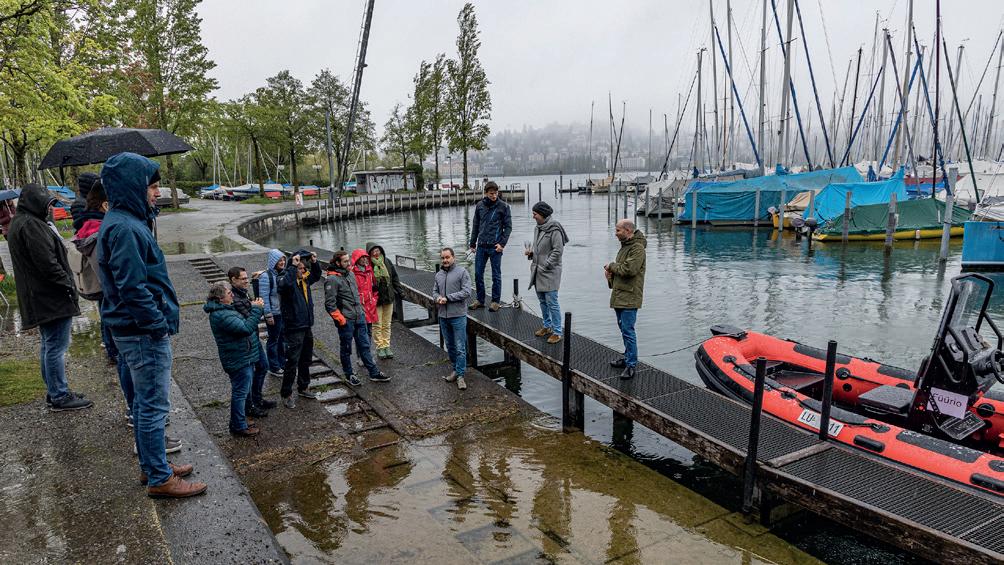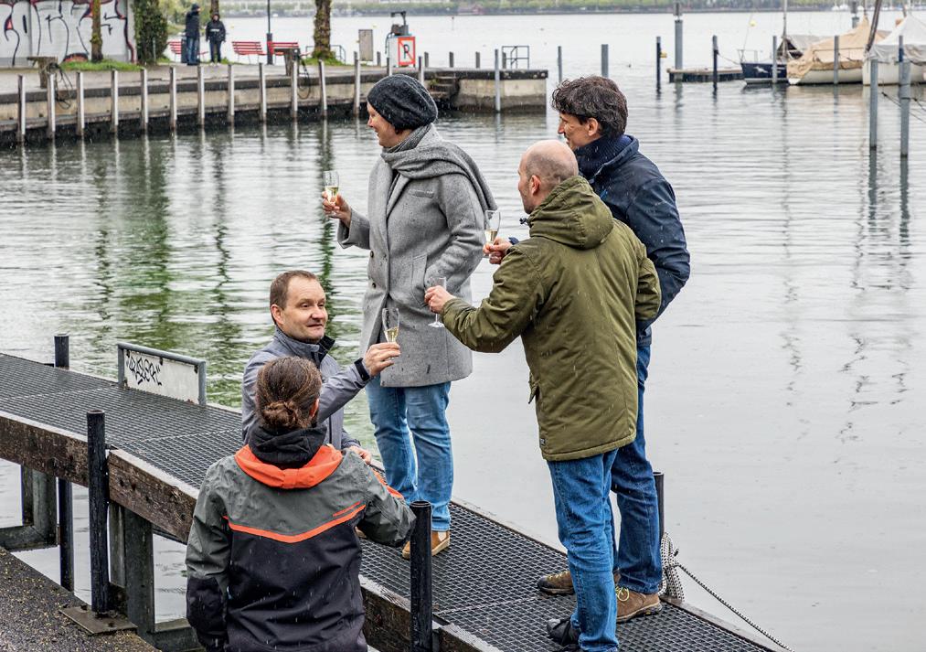 soll auf den Namen «Füürio» hören. Pius erklärte uns, was es mit dem Namen auf sich hat, und wie dieser basisdemokratisch zustande kam. Ein Name, der besonders gut zum ursprünglichen Einsatzzweck des Bootes passt, als Feuerwehrboot. Die Taufe wurde traditionsgemäss mit einer guten Flasche Champagner vollzogen, und alle jubelten. Das neue Motorboot wurde somit seefertig gemacht und steht ab sofort zur Verfügung. Dem Wetter zum Trotz gings dann doch noch auf den See. Eine Gruppe unerschrockener Seemänner, zusammen mit ein paar jungen Nachwuchsseglern, konnte es sich nicht nehmen lassen, doch noch eine Spritztour zu unternehmen.