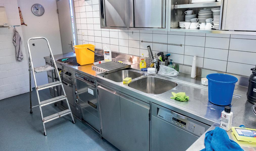 Kurze Zeit später wird rund um das Clubhaus emsig gearbeitet. Es ist Herbst und das Laub muss entfernt werden. Ein Dank an das elektrische Gebläse. Auch auf der Terrasse liegt das Laub, vor allem in der Dachrinne. Im Haus selber wird der Staub auf den Deckenbalken und an den Wänden entfernt, damit die Fenster anschliessend gereinigt werden können. Die Küche ist jedes Jahr ein Thema. Fett- und Schmutzanhaftungen sind besonders hartnäckig.