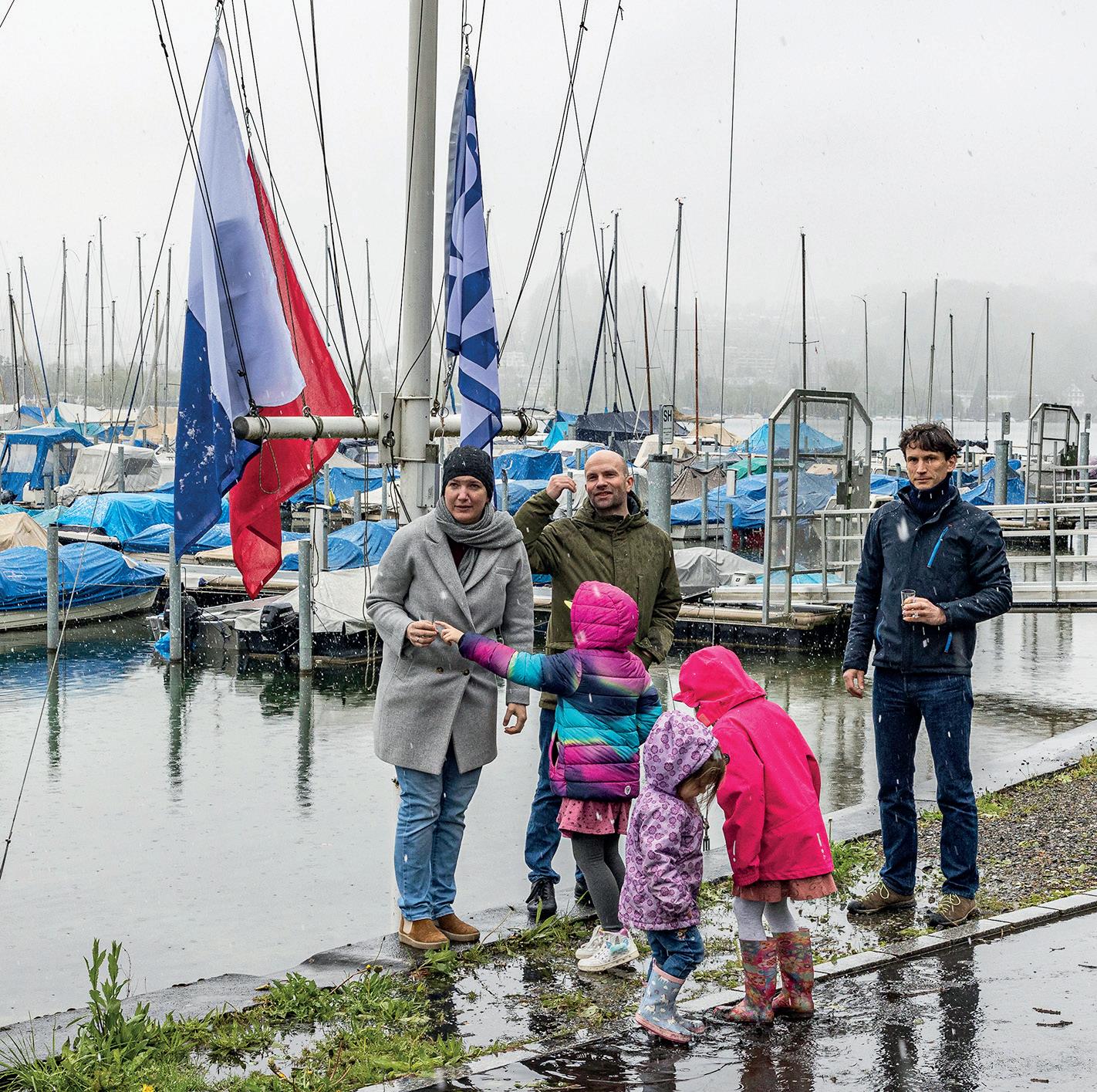 Kein Segeln, aber eine Taufe Leider war das Wetter an diesem Tag nicht sehr segelfreundlich. Waren die Temperaturen die Woche zuvor bei sommerlichen 25° C, schneite es am hiesigen Wochenende während des Flaggenhissens sogar. Trotzdem liessen sich die Segler die Laune nicht verderben. Sie versuchten, Neptun mit einem guten Tropfen Rum zu besänftigen, aber auch das half nicht. Wir hoffen, dass Neptun doch noch einlenkt und uns für die restliche Saison freundliches Wetter mit guten Winden bescheren wird. Doch es gab noch ein besonderes Ereignis, das alle erfreute. Der Club hatte ein neues Motorboot angeschafft, das an diesem Tag feierlich getauft wurde. Es ist ein sportliches Schlauchboot mit 100 PS, das vor allem unserer JUGA gut zur Seite stehen wird. Der Präsident Mischa enthüllte zusammen mit dem Kassier Pius den Namen des Bootes, der mit Spannung erwartet wurde. Unser neues Clubboot