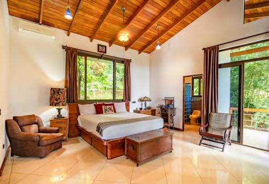 The home boasts three spacious bedrooms and three well-appointed bathrooms, along with a chef-inspired kitchen. Each bedroom offers stunning views, room to unwind, and a natural, tropical feel. The living spaces are designed to maximize comfort and provide an inviting atmosphere for entertaining. Whether enjoying a glass of champagne or a cup of Costa Rican coffee, you and your guests will appreciate the luxurious setting. Custom-tiled floors, stone countertops, and wooden ceilings create a perfect harmony between indoor and outdoor living spaces.