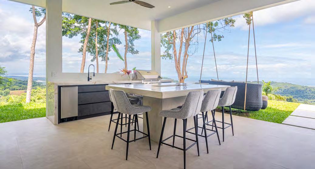 The outdoor spaces are made for tropical living: a covered BBQ kitchen, expansive patios, and panoramic viewpoints invite year-round enjoyment of ocean breezes and daily visits from monkeys, toucans, and sloths.