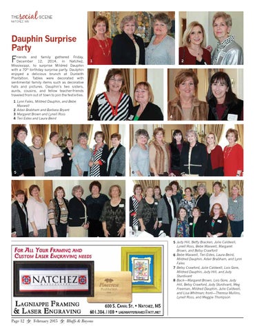 Dauphin Surprise Party riends and family gathered Friday, December 12, 2014, in Natchez, Mississippi, to surprise Mildred Dauphin with a 70th birthday surprise party. Daulphin enjoyed a delicious brunch at Dunleith Plantation. Tables were decorated with sentimental family items such as decorative hats and pictures. Dauphin’s two sisters, aunts, cousins, and fellow teacher-friends traveled from out of town to join the festivities.