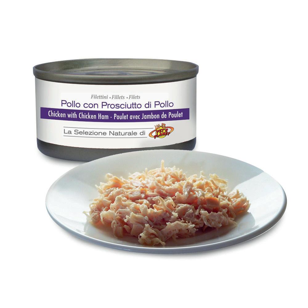 Composizione: pollo 53%, brodo di pollo, amido di tapioca 1%, glucosio.