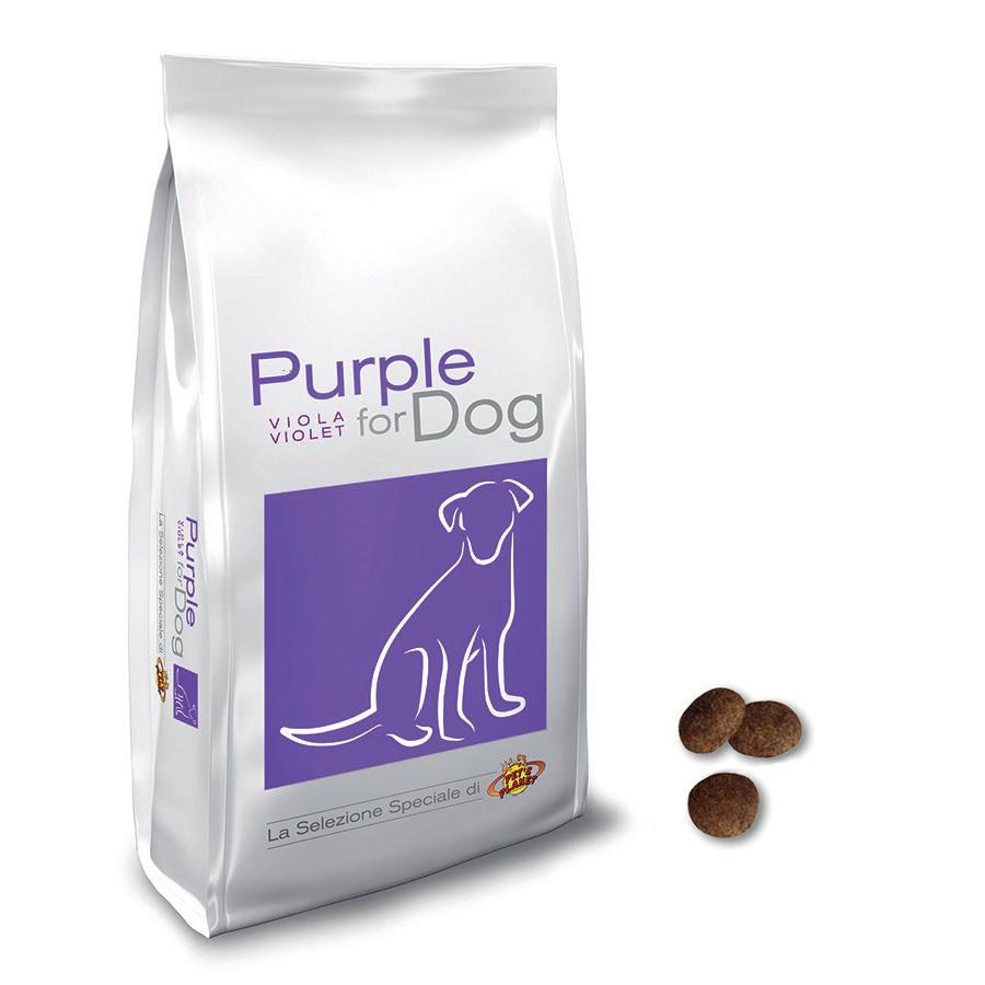 PURPLE for Dog contiene carni sgrassate e disidratate di suino, manzo, tacchino; proteine idrolizzate (proteine tra ate in modo tale che non a aticano ulteriormente lo stomaco poiché sono “predigerite”); salmone fresco all’origine e tonno disidratato, naturalmente ricchi di Omega 3 (acidi grassi insaturi che svolgono un’importante azione anti infiammatoria).Contiene cereali integrali (riso, mais – ricco di Omega 6, utile alla salute della pelle e alla bellezza del pelo- e orzo).Contiene piselli proteici integrali (proteine vegetali di altissima qualità). Contiene Glucosamina e solfato di Condroitina per le articolazioni. Con Super Food: Polpa di barbabietola, ricca di fibra dietetica; Yucca schidigera, con e e o positivo sull’intestino Zenzero, coadiuvante nel favorire la digestione.