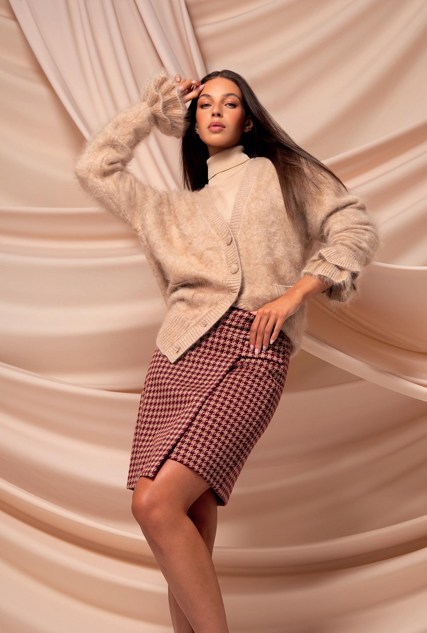 Die Silhouetten dieser Saison definieren sich durch klare Brüche und neue Proportionen. Asymmetrische Schnitte schaffen Spannung, voluminöser Cashmere verleiht Präsenz, während Veloursleder Struktur und Substanz gibt. Kleidung wird so zu einem Ausdruck von Haltung und Selbstbewusstsein – modern, kraftvoll und unverwechselbar.