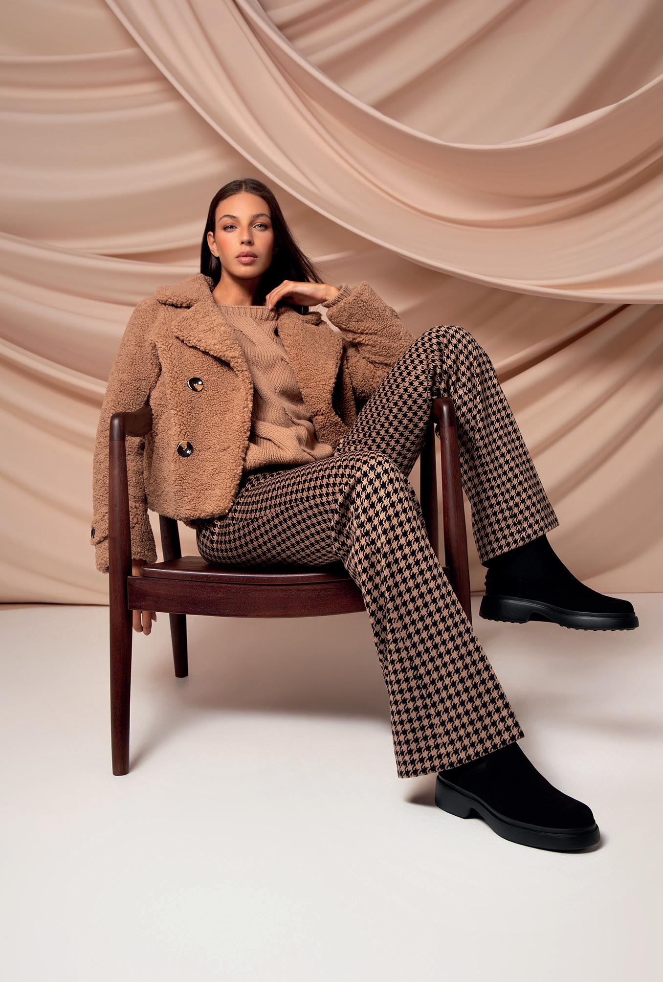 Power Dressing erlebt eine Renaissance. Blazer mit markanten Schultern, Röcke, die Selbstbewusstsein und Eleganz verbinden, und Wide Leg Hosen, die eine subtile Freiheit ausstrahlen, werden zu Statements. Denim zeigt sich robust, unkonventionell, manchmal deconstructed, und bleibt damit die universelle Leinwand für Individualität. Leo-Prints setzen feine Akzente, während Chunky Boots die Straßen erobern und Retro Sneaker ein spielerisches Augenzwinkern zwischen Nostalgie und Moderne liefern.