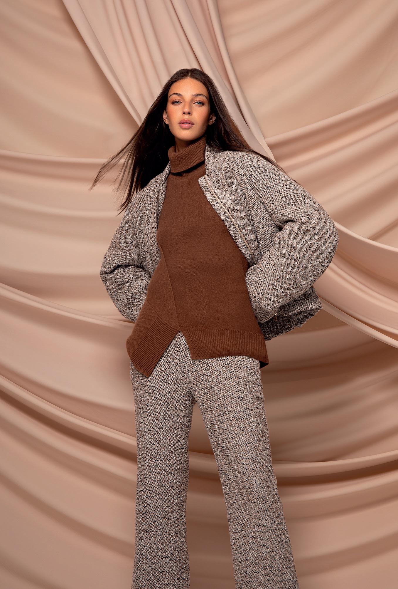 Die Silhouetten dieser Saison definieren sich durch klare Brüche und neue Proportionen. Asymmetrische Schnitte schaffen Spannung, voluminöser Cashmere verleiht Präsenz, während Veloursleder Struktur und Substanz gibt. Kleidung wird so zu einem Ausdruck von Haltung und Selbstbewusstsein – modern, kraftvoll und unverwechselbar.