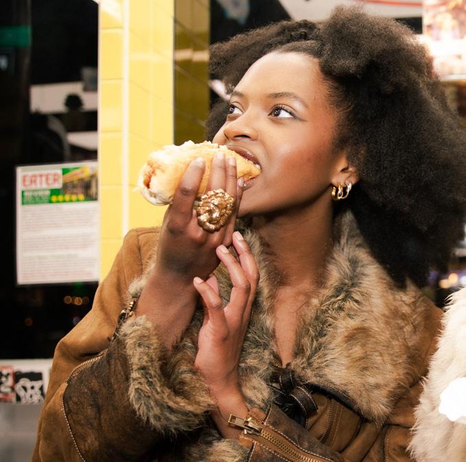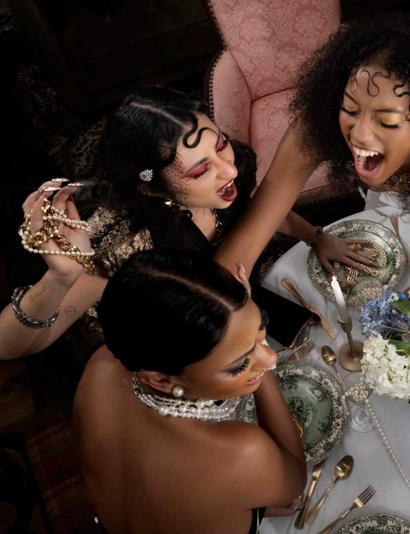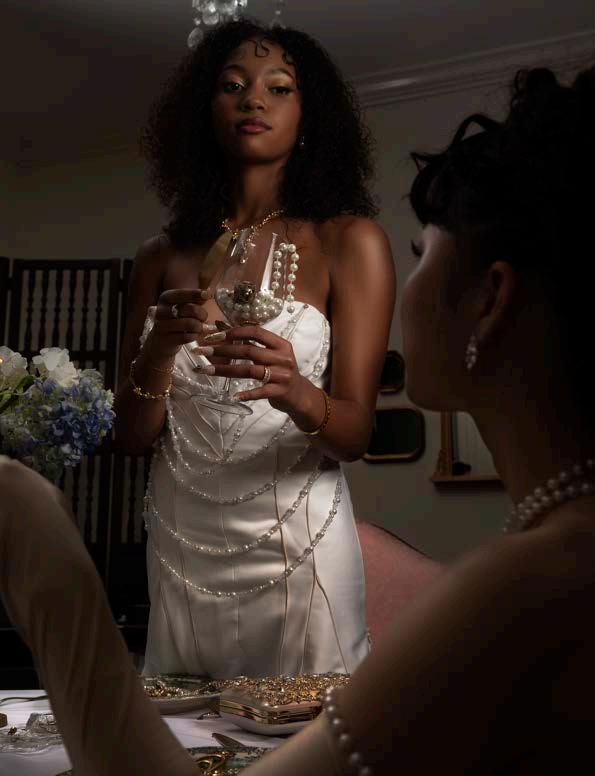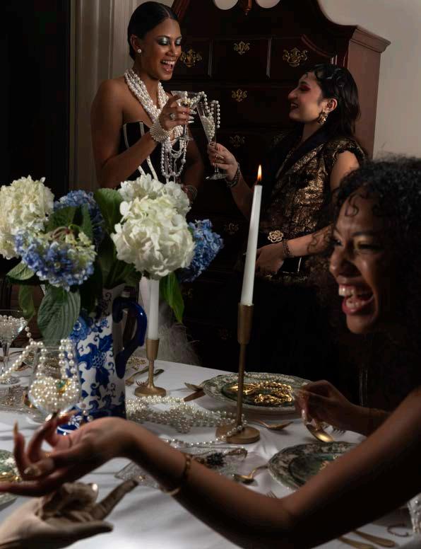This was not the end of our difficulties as the team dealt with the unexpected loss of team members, photo shoots rescheduled, and many more issues, but we took it in stride. Once we started production in the spring, we found a new meaning in indulgence. Embodied by the cover, The Indulgence Issue represents finding the glamour even in the face of adversity. It is holding your head up high and persevering when times are tough. Even though there are so many issues plaguing the world and impacting FIT’s student body, it’s important to find moments to foster creativity despite it all. Despite working with limited resources compared to previous issues, our team has been able to craft an extravagant issue that continues to propel the club forward.
