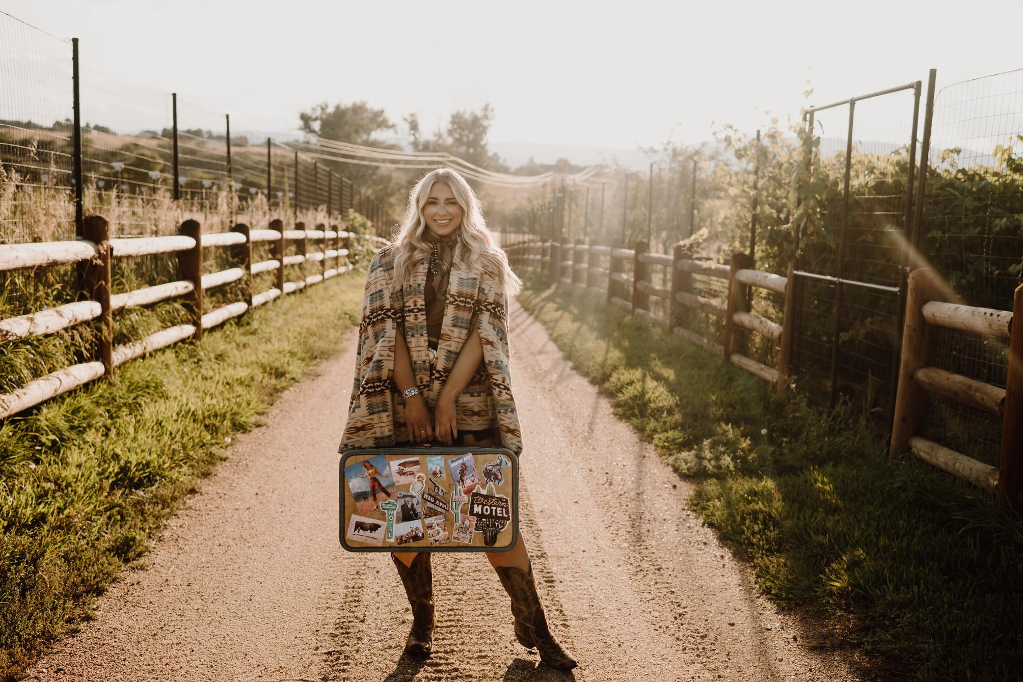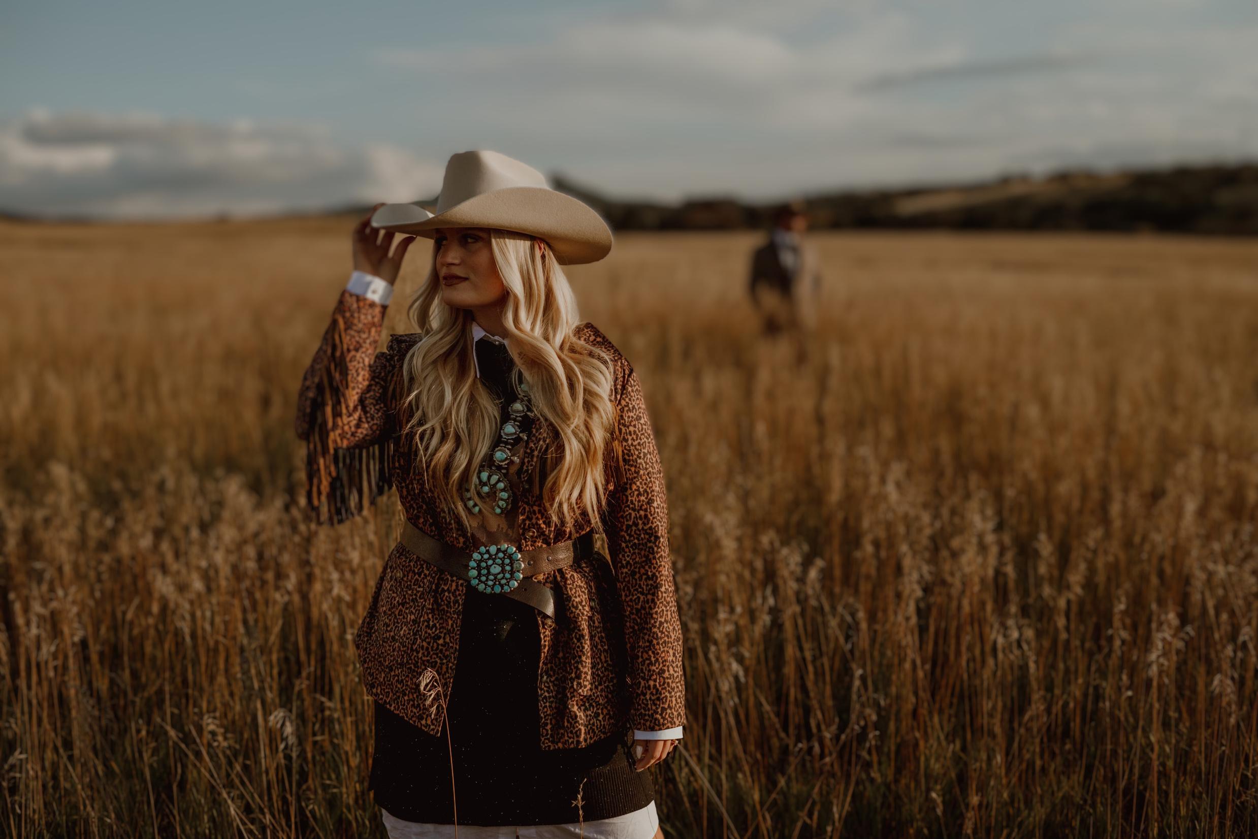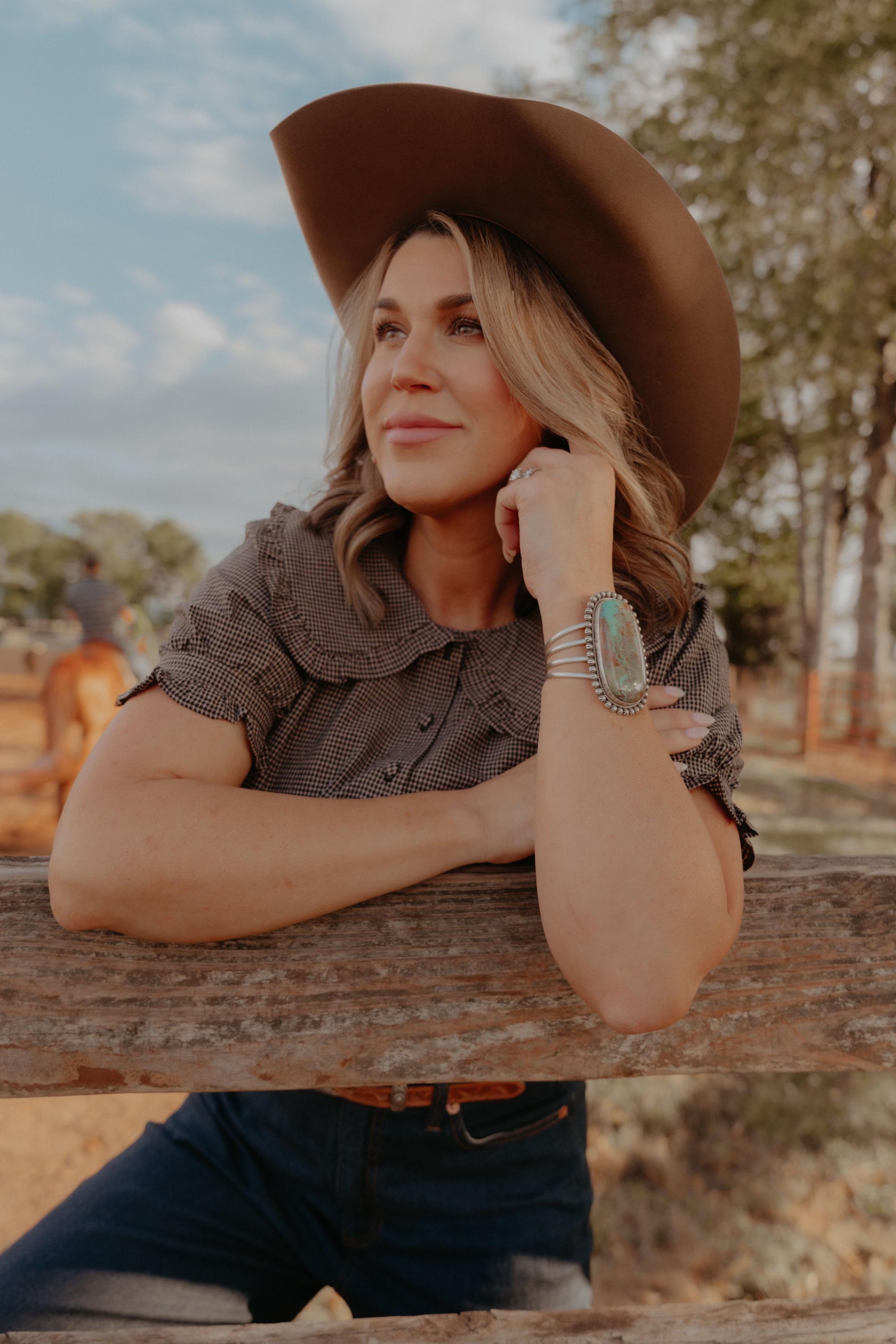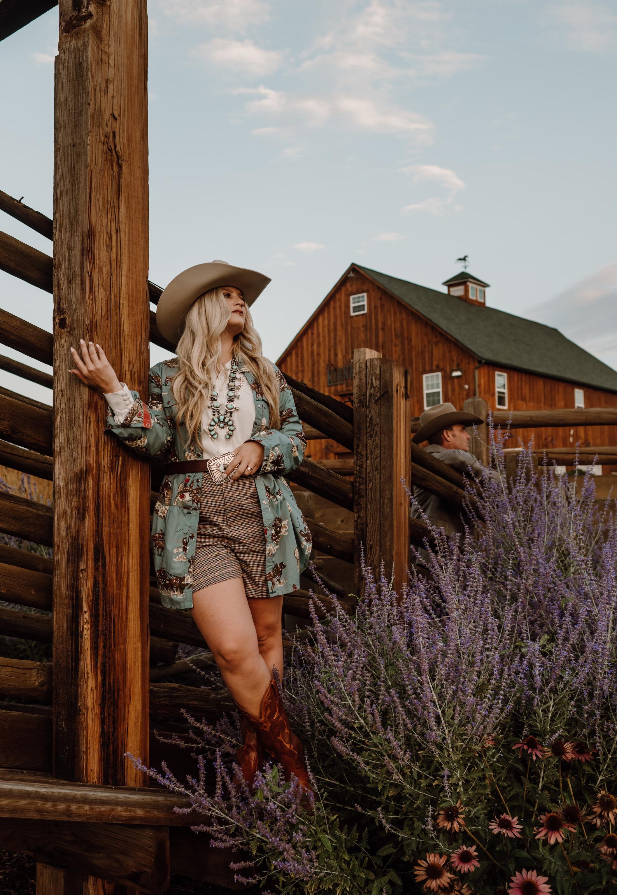 Cowboyin’ Up in this fun western print. If it has a western twist to it, you betcha you can find it at Blush Out West. This may be a favorite look that Jody wore in our Look Book shoot, and it just so helps that Kiana Creek Ranch had the perfect old wagon.