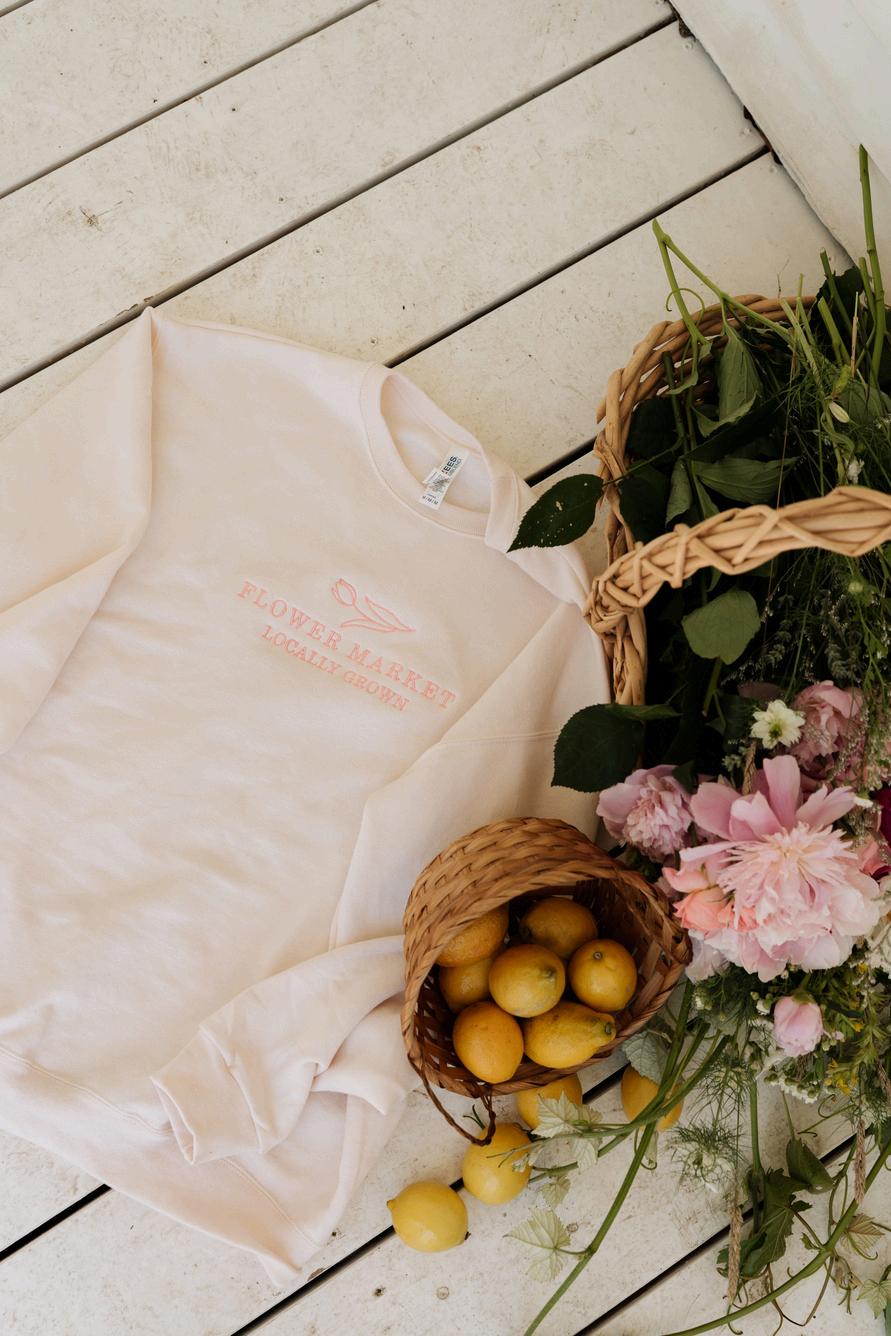 Iknowyougalscan appreciateacozy piecethatisdarn cute! Creamybasewith lightpink-peachy writing. Headingtothe FarmersMarket? Here’syour pullover!