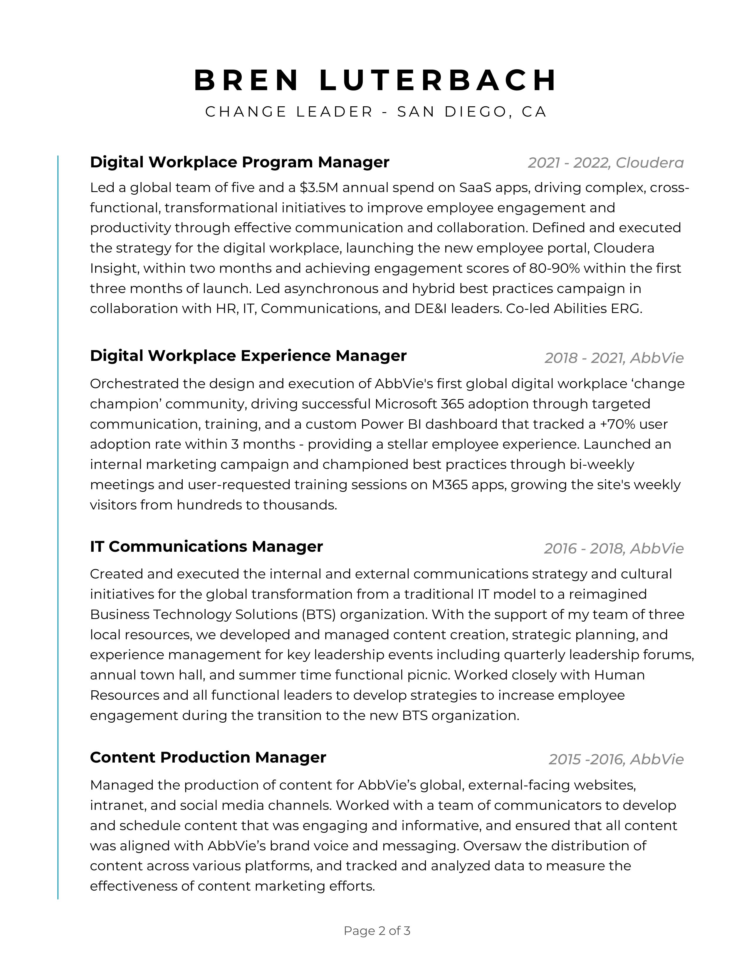 As a results-oriented and experienced leader with a strategic mindset and a proven ability to motivate teams, I have led successful employee-centric communications and culture change initiatives across a variety of industries, including consumer technology, healthcare, and finance. I am passionate about using technology to connect with audiences, build strong relationships, and deliver engaging, modern communications, while building thriving, impactful communities.