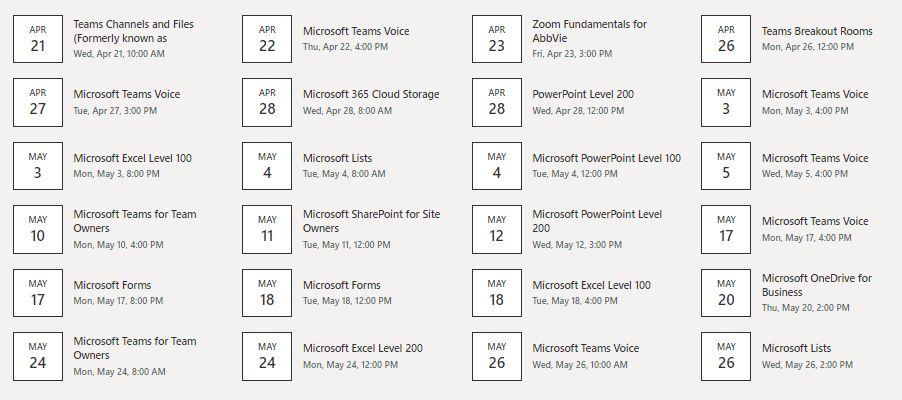 • Our go.abbvie/Teams page with colleagues and encourage attendance of offered training – feel free to forward our Champion Outlook invites