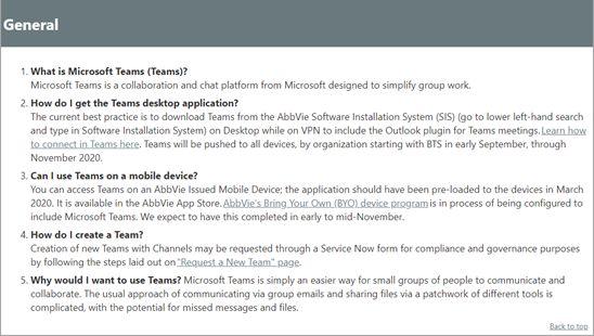 • Show colleagues how to navigate the go.abbvie/Teams page to find information and training – build confidence