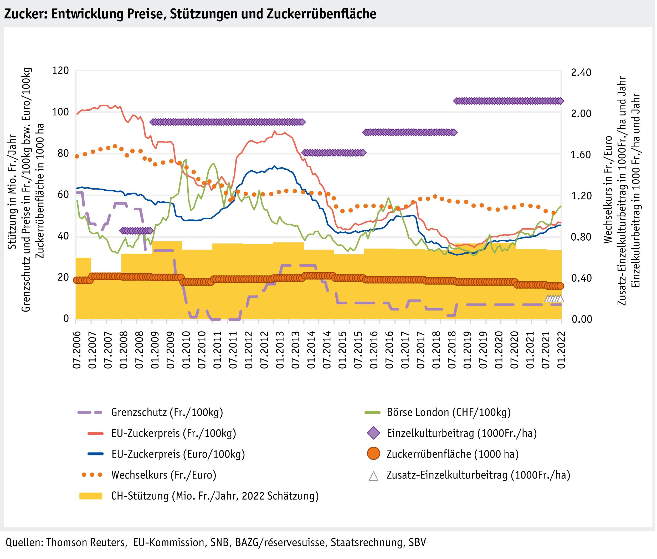 In diesem Bereich des Agrarberichts werden die Produzenten- und Konsumentenpreise für verschiedenetierischeundpflanzlicheProdukteinderSchweizundindendreiNachbarländern Deutschland, Frankreich und Österreich einander gegenübergestellt. Sie werden entlang der gesamten Wertschöpfungskette von verschiedenen Faktoren beeinflusst. Haupteinflussfaktor ist der höhere oder tiefere Grenzschutz. Von diesem Hauptfaktor hängen viele weitere Faktoren ab wie beispielsweise Betriebsstruktur, Produktionsfaktoren sowie Verarbeitungsund Verteilstrukturen. Rechtsvorschriften und private Standards beeinflussen ebenfalls das Preisniveau. Diese Faktoren sind im Inland und im benachbarten Ausland nicht immer deckungsgleich. So sind Vergleiche schwierig, weil Daten zu identischen Produkten, die noch dazu auf einer vergleichbaren Vermarktungsstufe angeboten werden, verfügbar sein müssen.
