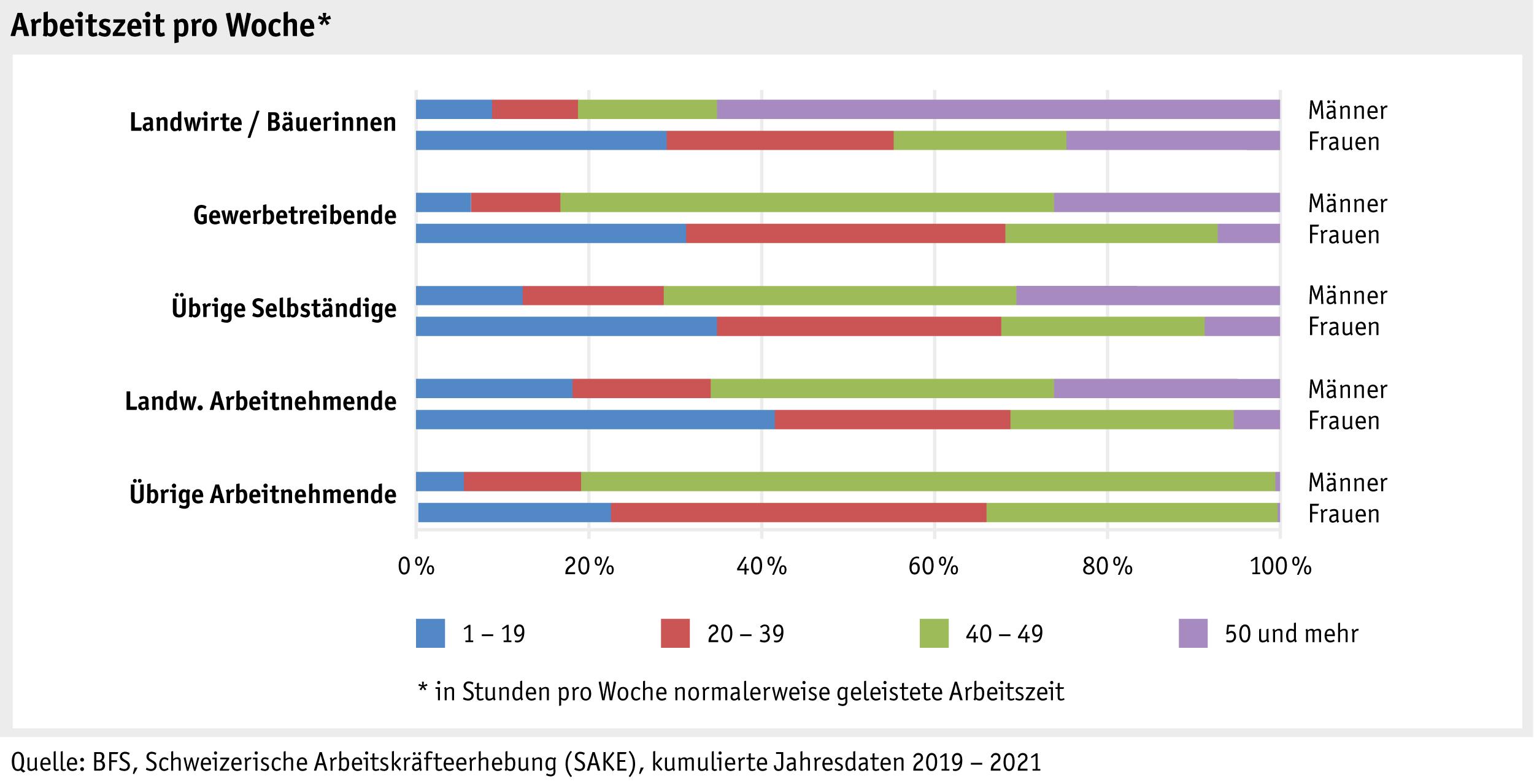 Anmerkung: Die Arbeitszeit pro Woche berücksichtigt einzig die Stunden der Haupterwerbstätigkeit («Normalarbeitsstunden», falls mehrere Tätigkeiten vorliegen) –Haushaltsarbeiten werden nicht angerechnet.