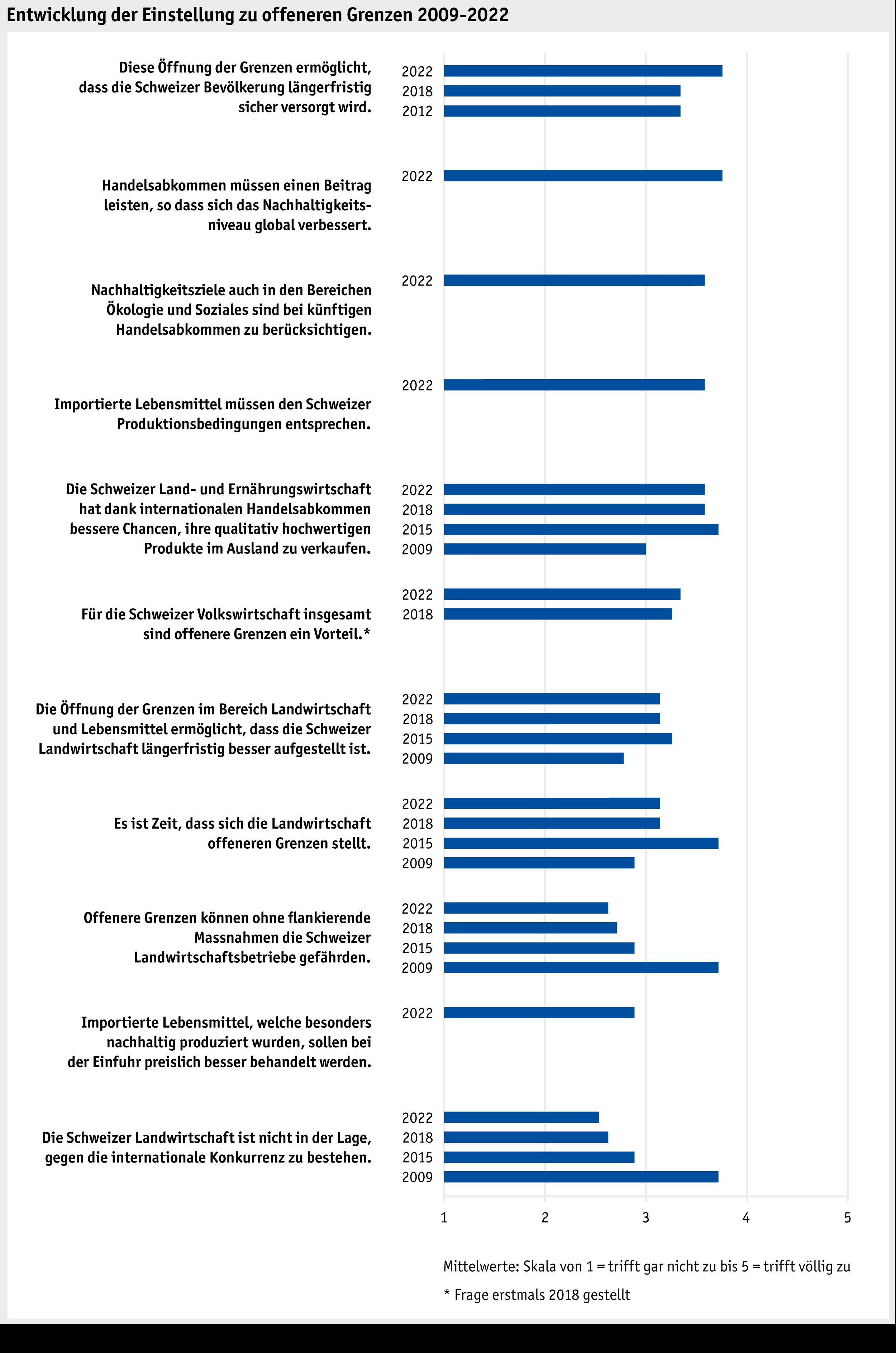 Die internationalen Beziehungen standen im Jahr 2022 im Zeichen der globalen Ernährungssicherheit. Die Märkte konnten sich noch nicht vollumfänglich von der globalen Pandemie erholen, da stellte die militärische Intervention von Russland in der Ukraine die internationalenLieferkettenvorneuegrundlegendeHerausforderungen.Funktionierendeund resiliente Handelsbeziehungen sind für die Schweiz als Nettoagrarimporteur ausschlaggebend für eine Versorgung der Bevölkerung.
