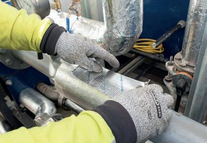 “De lamellendekens en pijpschalen van steenwol met een aluminiumfolie toplaag kunnen op maat worden gesneden en vastgezet met de TECLIT Alutape. Naden en verbindingen die in het isolatiewerk met TECLIT ontstaan worden ook met die Alutape afgeplakt. Daarmee wordt het werk visueel één geheel met een mooi, strak en naad-