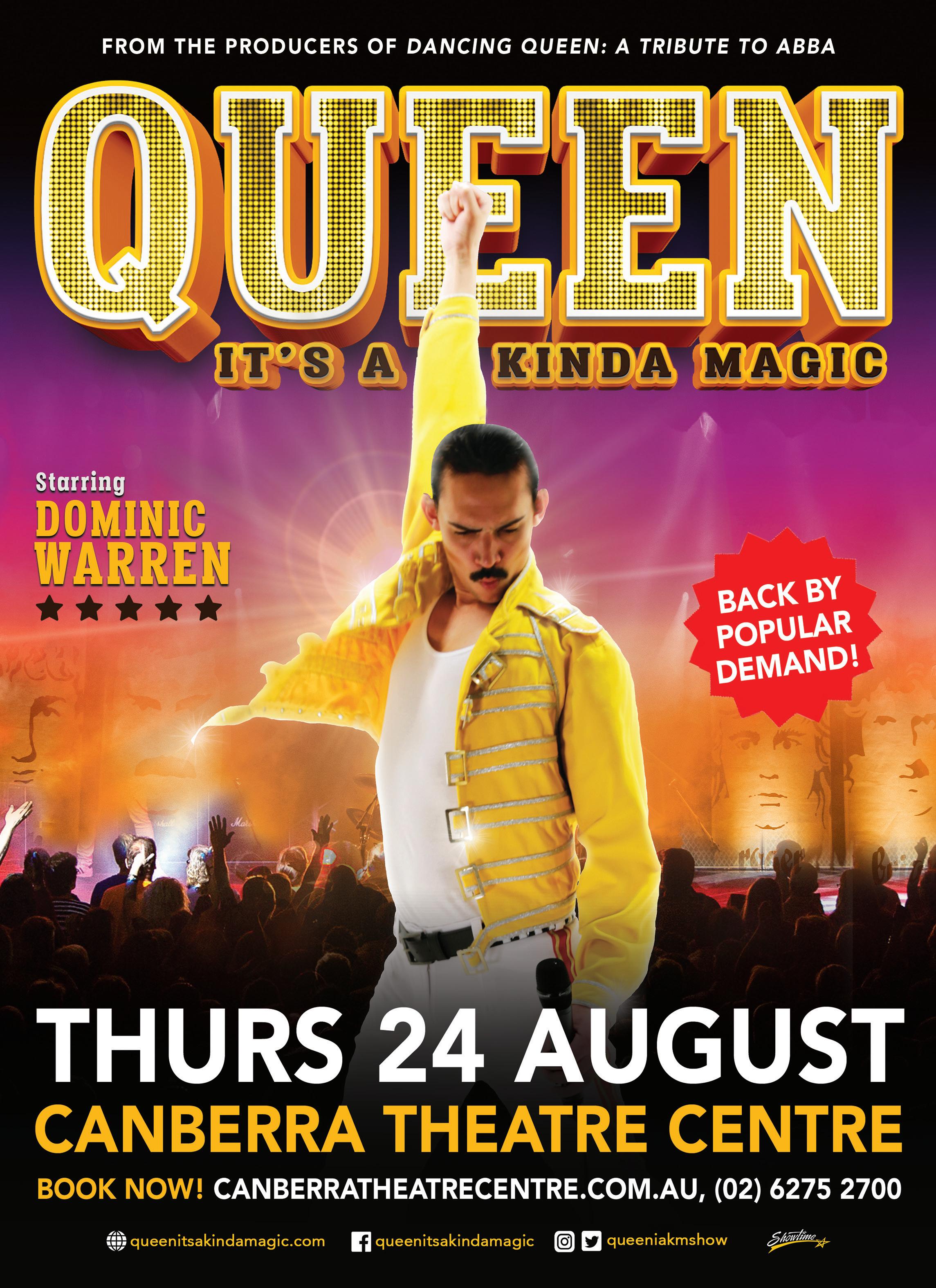 The show is set to again immerse fans in the spectacle, grandeur, and extravagance of Queen and Freddie Mercury, but with the incredible Dominic Warren on board, things are looking bigger and better than ever! 7:30pm, tickets $55-$65.50 +bf via Canberra Ticketing CANBERRA THEATRE