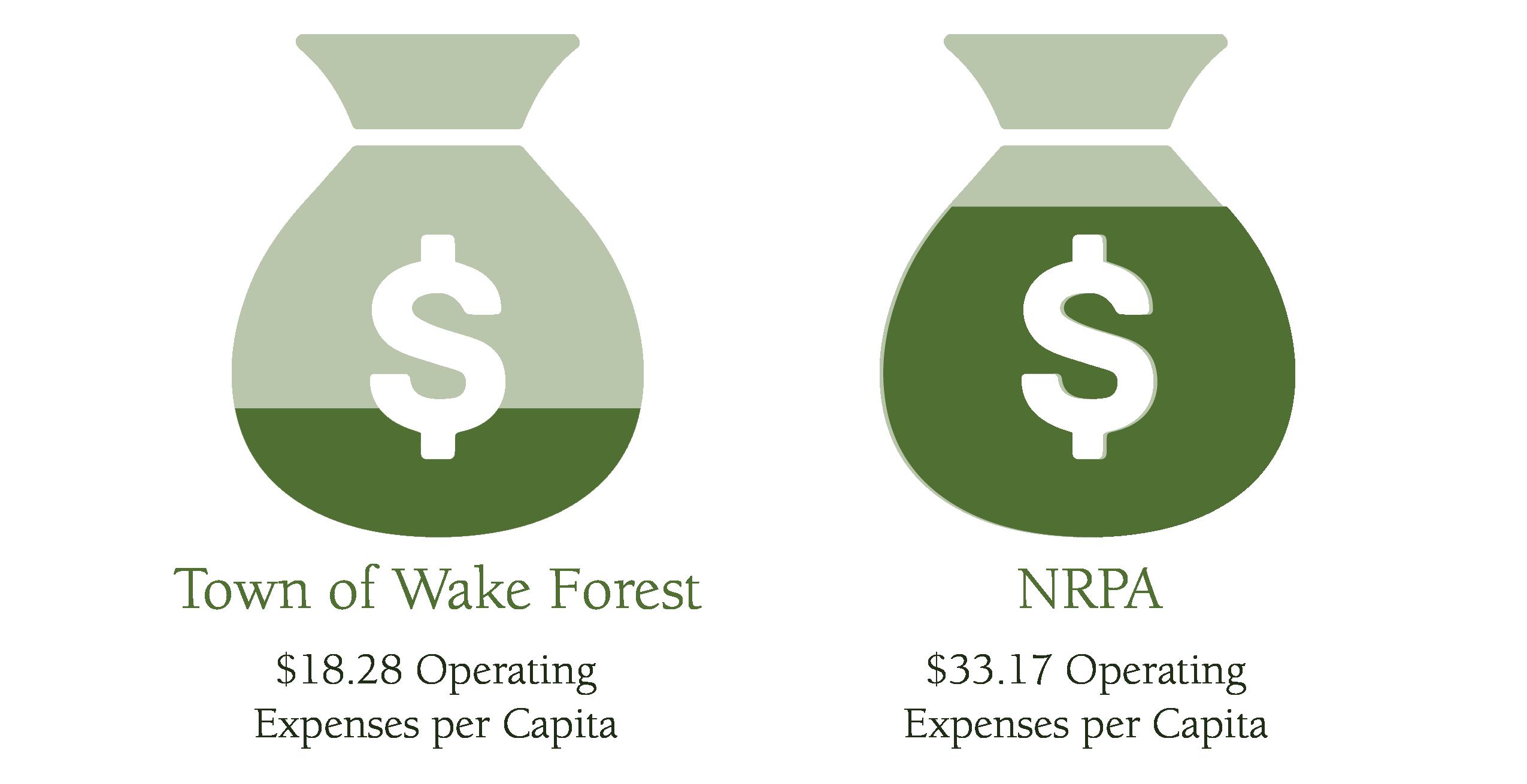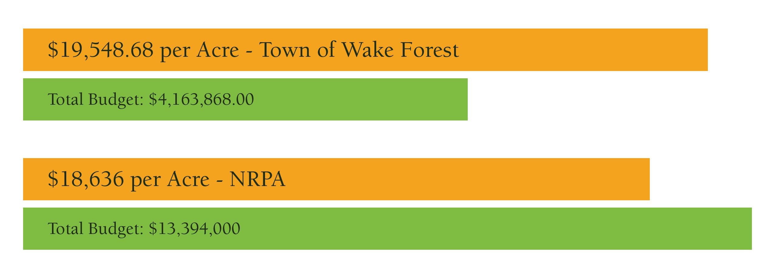Ȩ The amount of parkland in Wake Forest currently is lower than peer jurisdictions and increasing the amount of parkland to provide for both the current and future population will ensure that the Department is providing for the community.