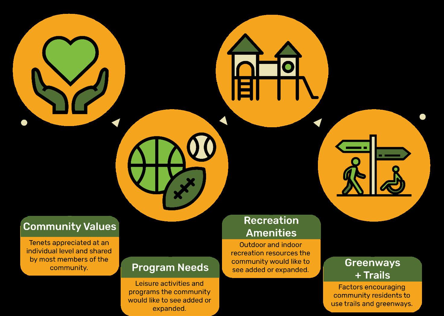 Ȩ Develop parks system recommendations in unison with other recent planning efforts and ensure that they are rooted in community values;