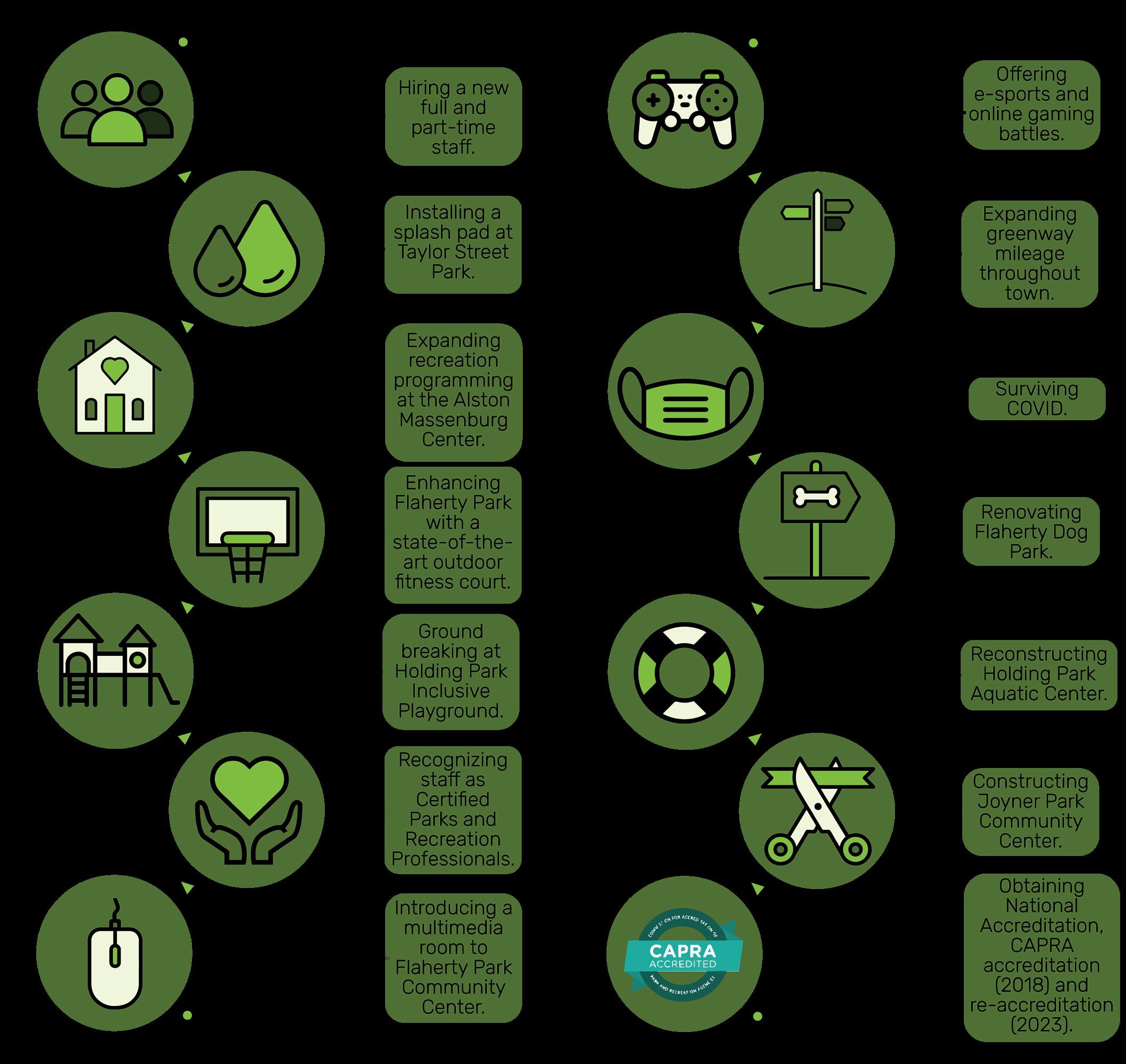 Ȩ Historical Legacy + Traditions: Honor and celebrate Wake Forest’s historical heritage and legacy by integrating it into park facilities, organizing special events, and collaborating with partners to preserve the town’s historic character.