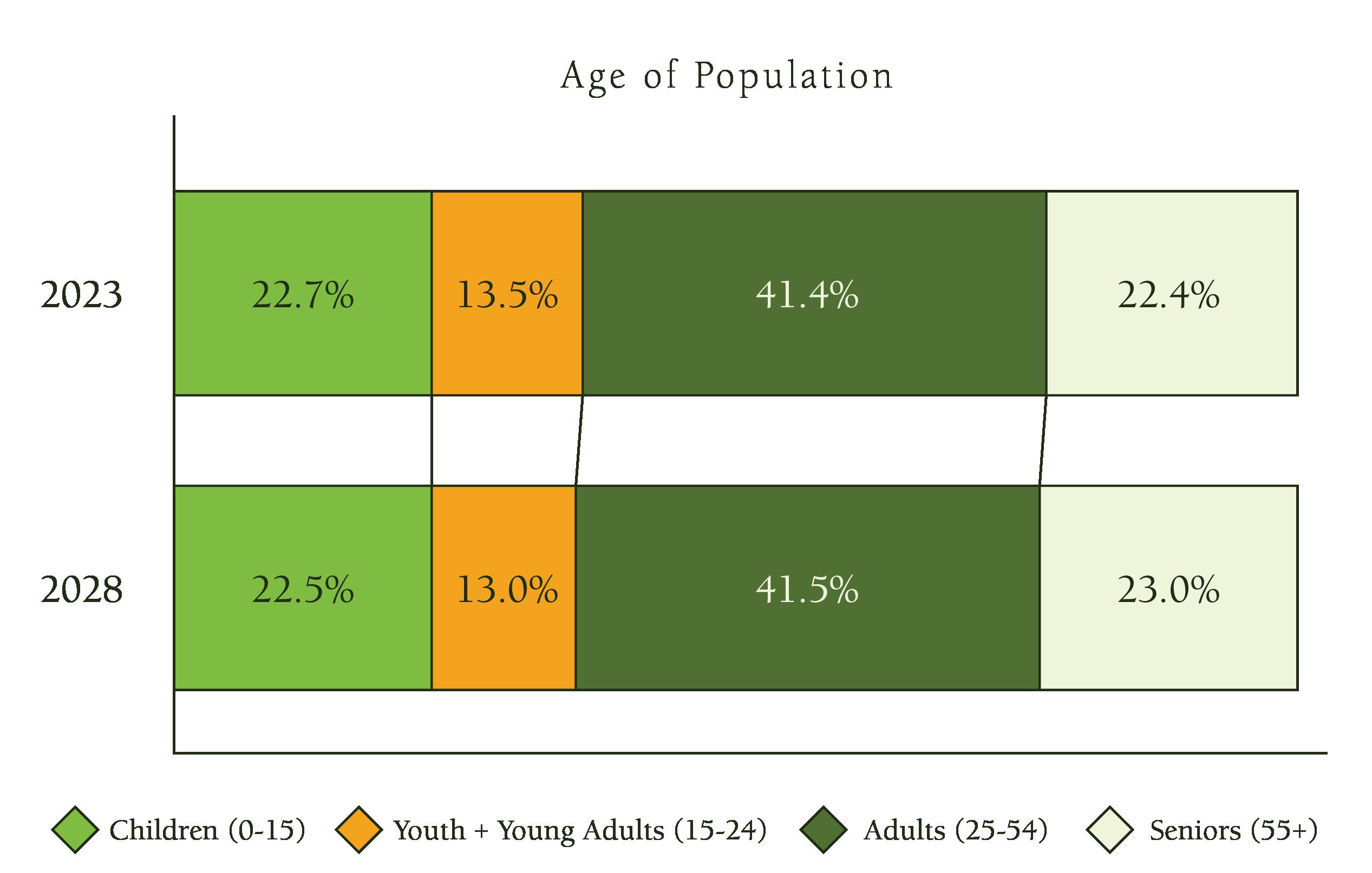 Ȩ Equitable Growth + Fair Access: Ensure equitable growth and fair access by prioritizing investment in underserved populations, celebrating diverse recreational preferences, and addressing disparities through intentional outreach and inclusive programming, ensuring that long-time and generational residents are not overlooked amidst the town’s growth and influx of higher-income households.