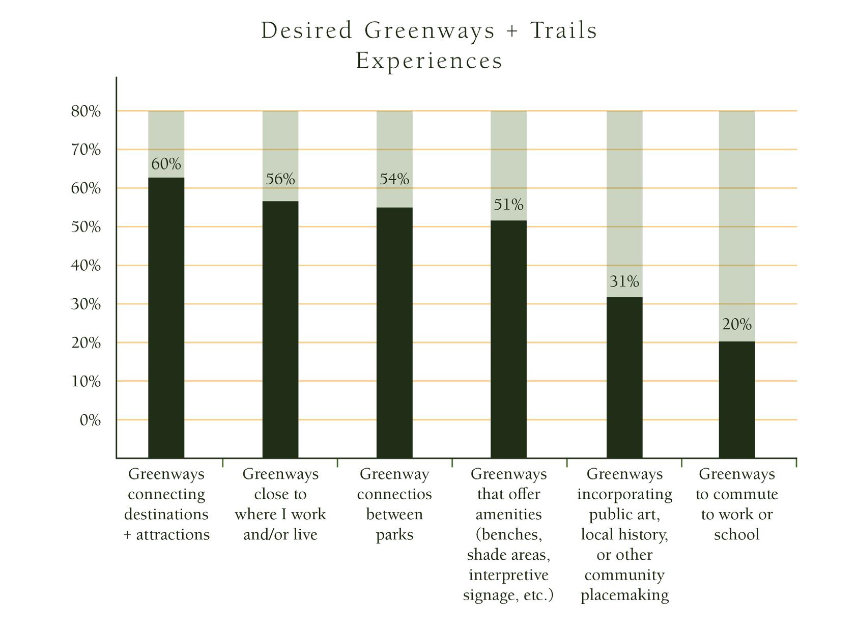 Ȩ Greenway Connectivity + Mobility: Expand and enhance greenway connectivity across the community to parks, cultural amenities, and local destinations while also providing increased mobility through active transportation.