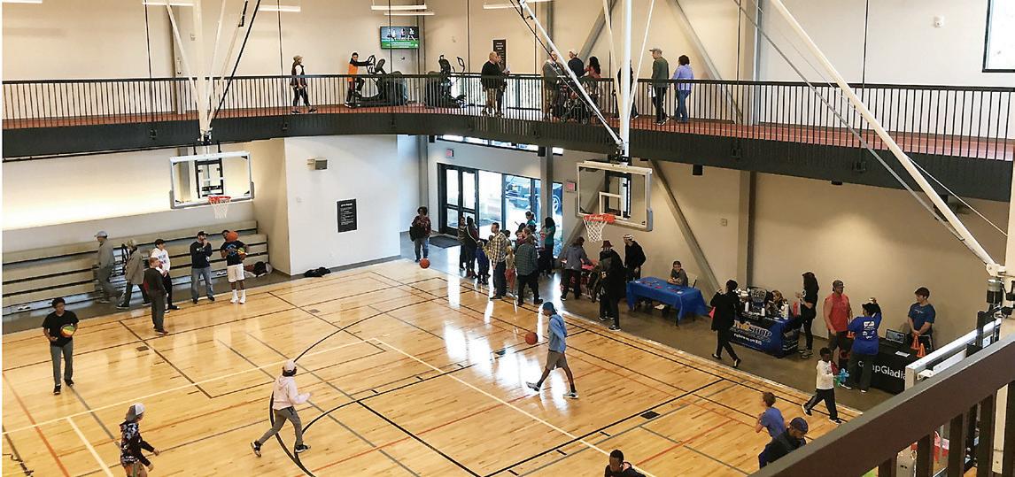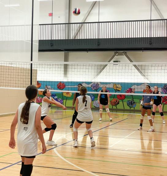 Indoor walking track, cardio equipment, exercise room, open gym times for volleyball, basketball and pickleball