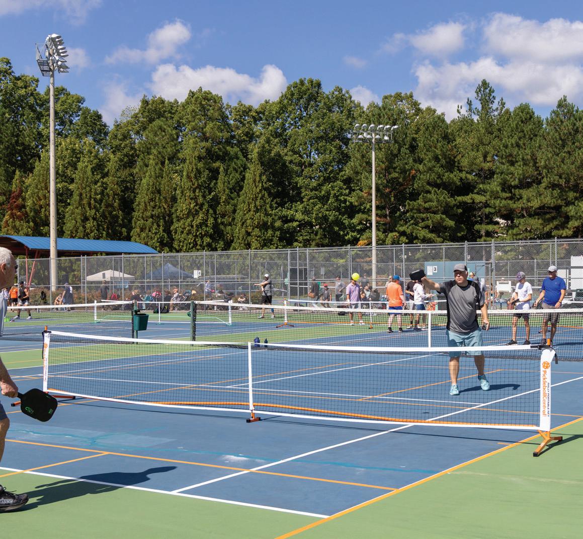 Flaherty Park is a 100–acre facility that includes lighted ball fields, a playground, a dog park, tennis courts, pickleball courts and a community center. See page 9 for center information.