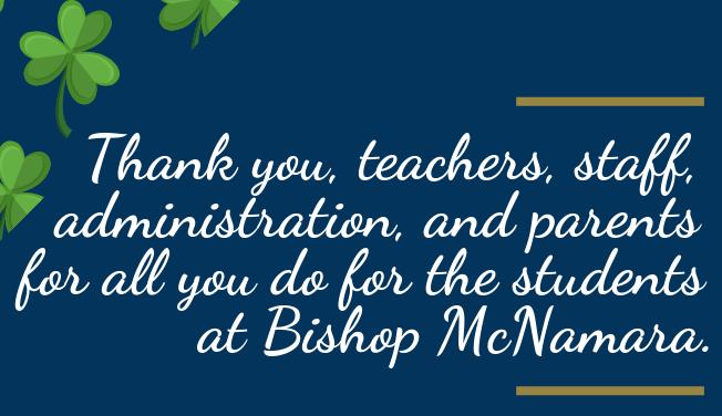 Let us celebrate tonight knowing that through your generosity, you are indeed supporting our mission. On behalf of the entire Bishop McNamara community, I say thank you for your support.