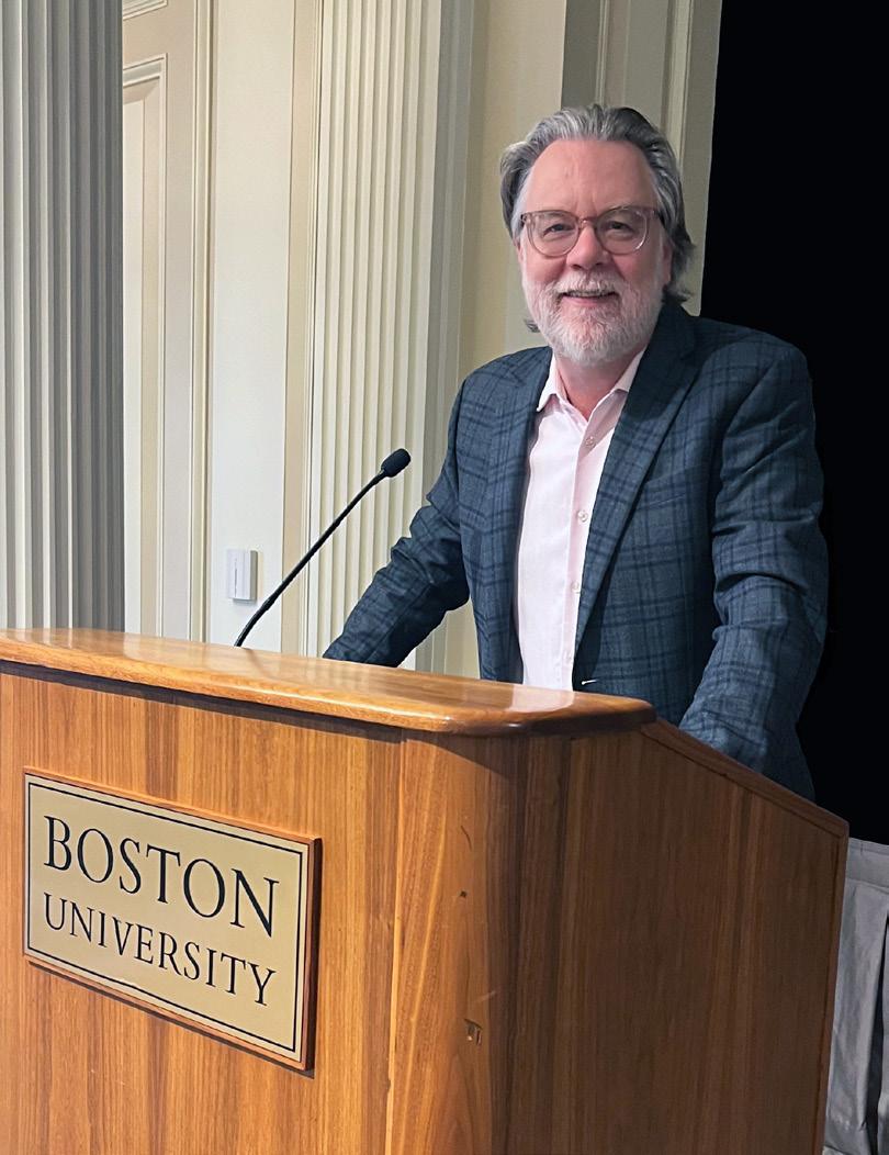 As a leader, White’s contributions to the tremendous growth of BU BME have included his collegial personality and sense of community, a commitment to cultivating excellent educators, and his ability to elevate our reputation well beyond BU. White feels that his most significant accomplishment as chair is growing the BME faculty from about 30 to about 40. “And as we hire, we just keep hiring better. We’ve developed this culture of interaction that is just generating grant opportunities one after another. So we’ve about doubled the amount of the research expenditures of the department in 10 years,” says White.