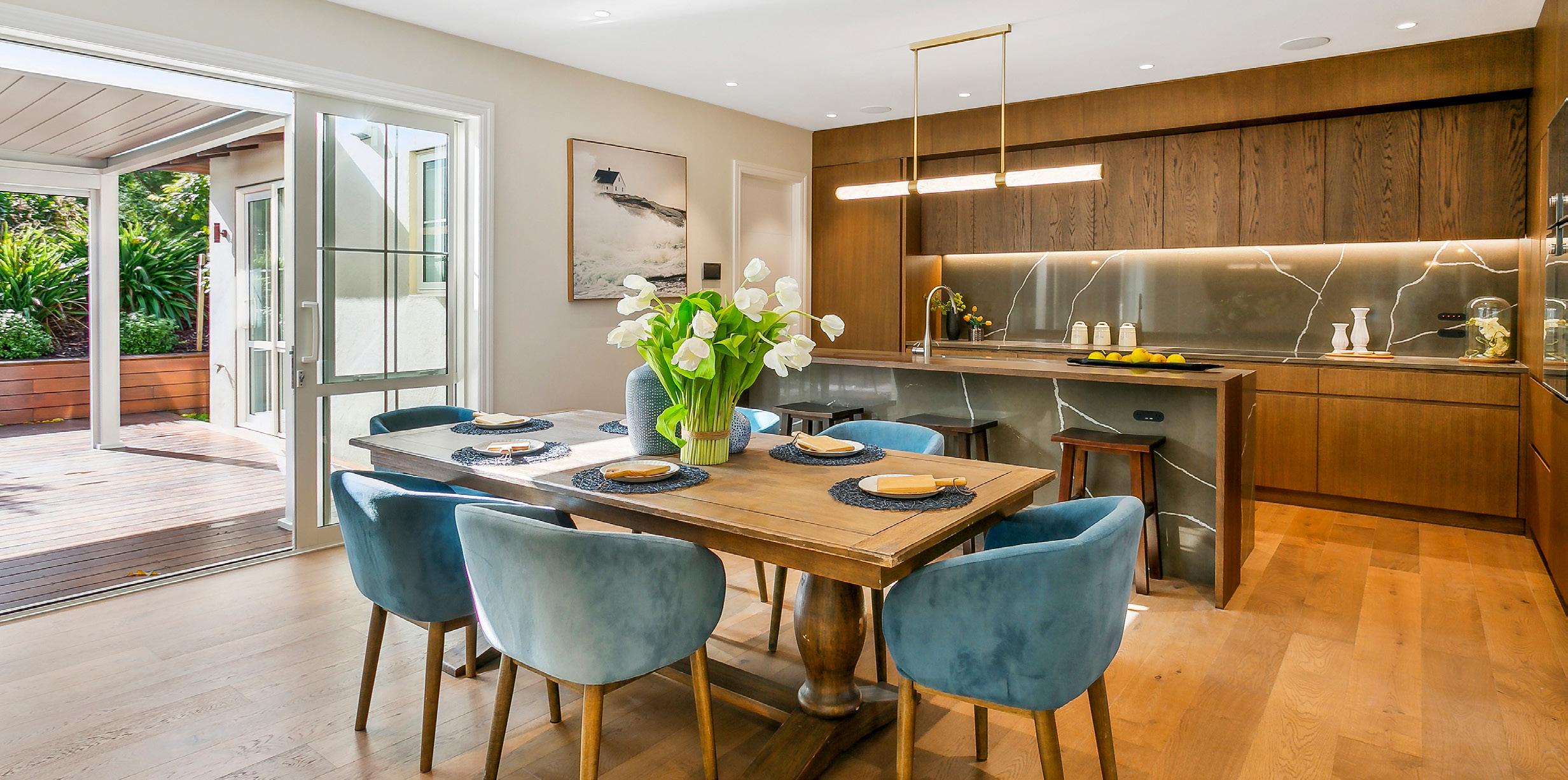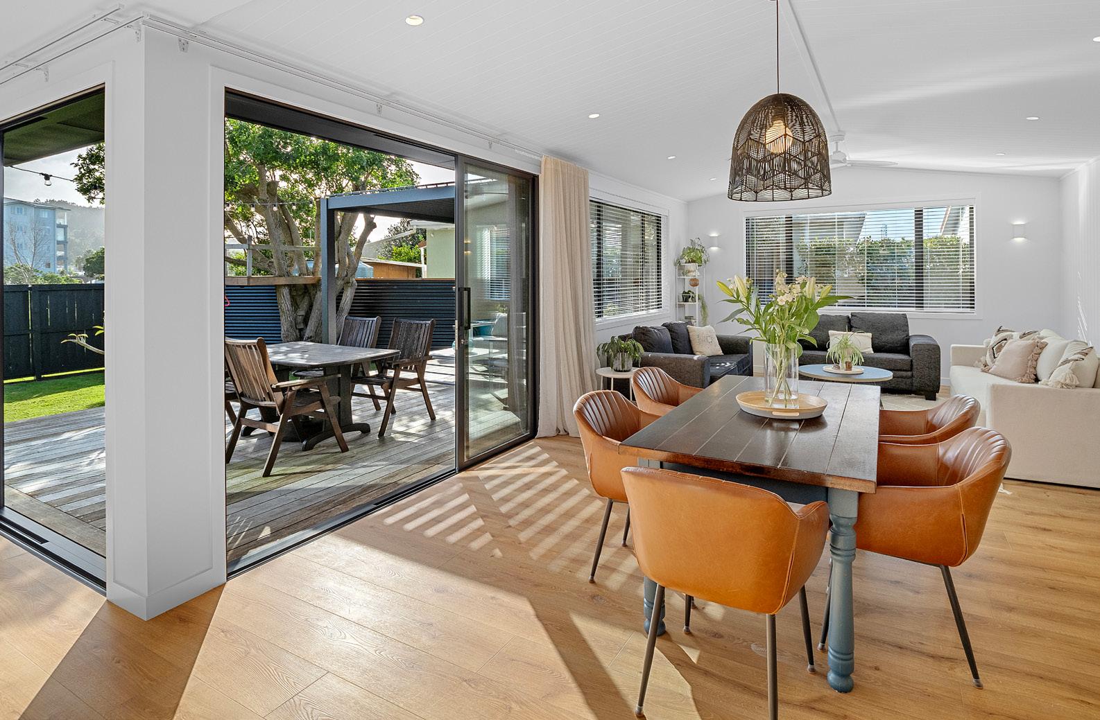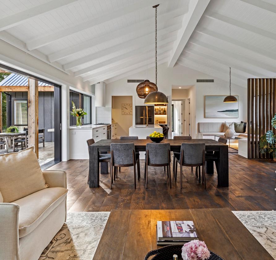 extension that ties so seamlessly with the existing living and dining areas it looks like it has always been there. Sliders, skylights, clerestory windows and bifolds ensure this room with a raked ceiling is bright and breezy. Adjoining this space and connected by bifolds is a new cabana with a barbecue and outdoor fireplace. Together, this is entertaining central.