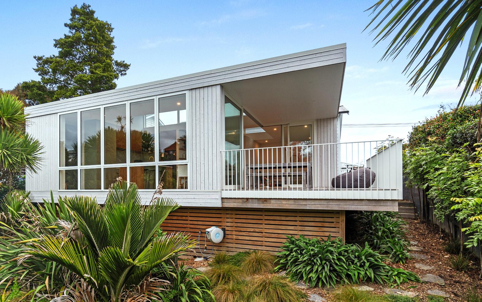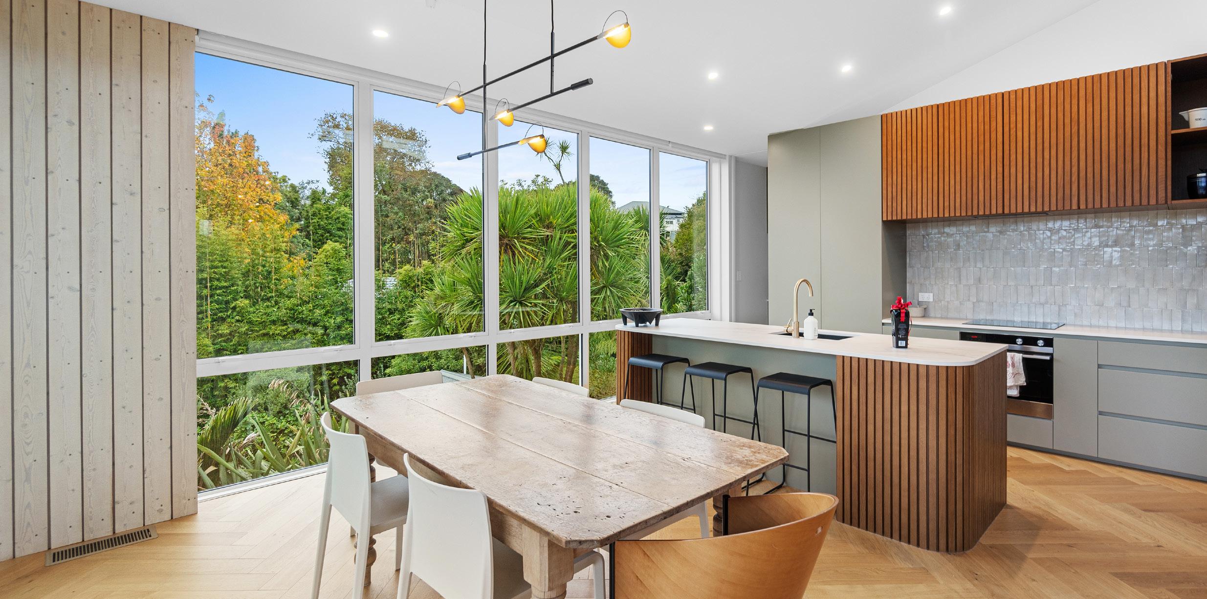 While this wing faces west to the bush, the layout of the main living room in the existing bungalow was reconfigured so the updated kitchen and dining space could take advantage of their northerly aspect. On the street side, a new entrance with a canopy means visitors now enjoy a clear welcome to this haven in the Waitākere Ranges foothills. For more of this house go to houseoftheyear.co.nz