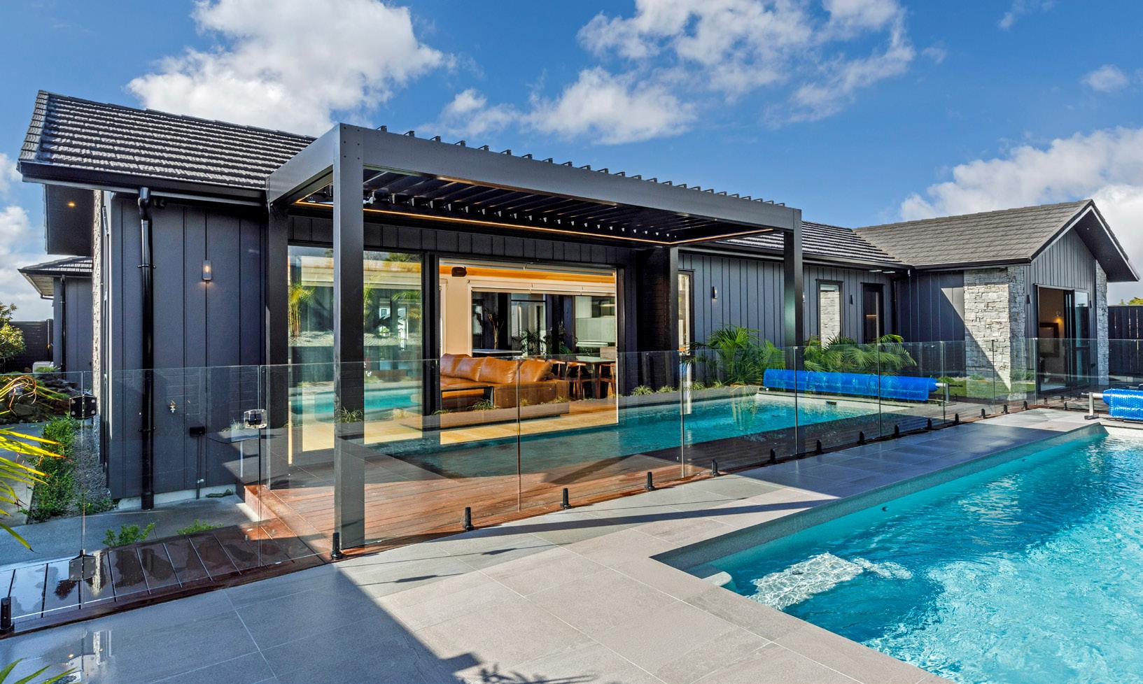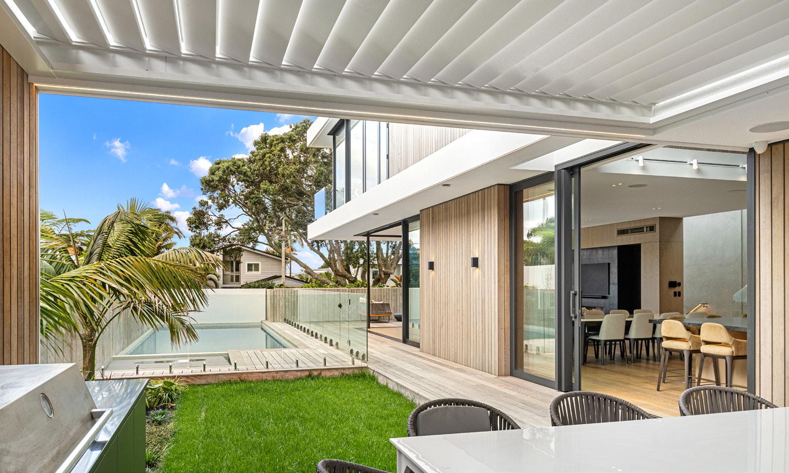 The rear of the property features an outdoor entertainment area with louvres from Aurae, a pergola with seating and a large 10m, fully heated and covered pool for the ultimate in any-weather