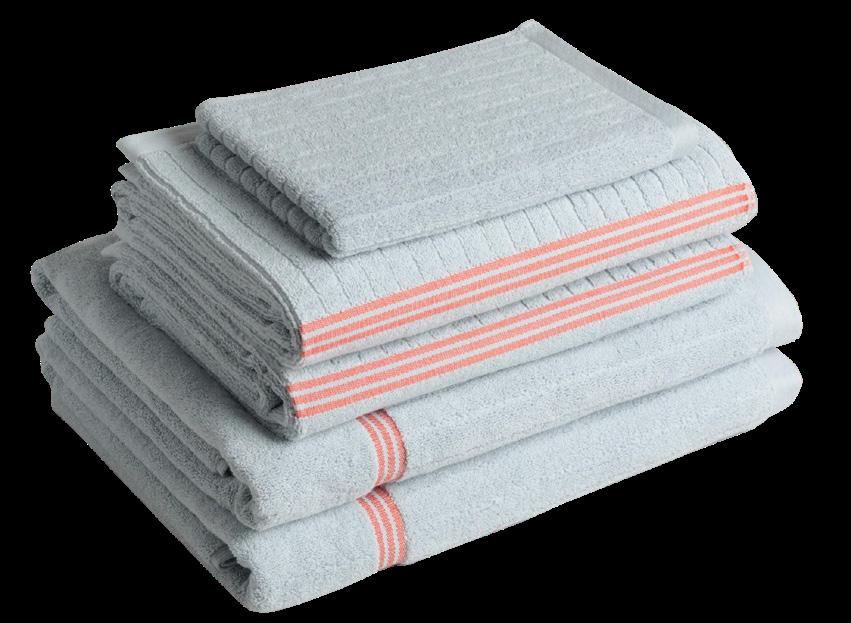 Nothing beats stepping out of the bath or shower and wrapping yourself in a luxurious towel. They also work to add pops of colour and texture to the bathroom and are a costeffective way to change the vibe. Look for matching sets or play with layering tones to add interest.