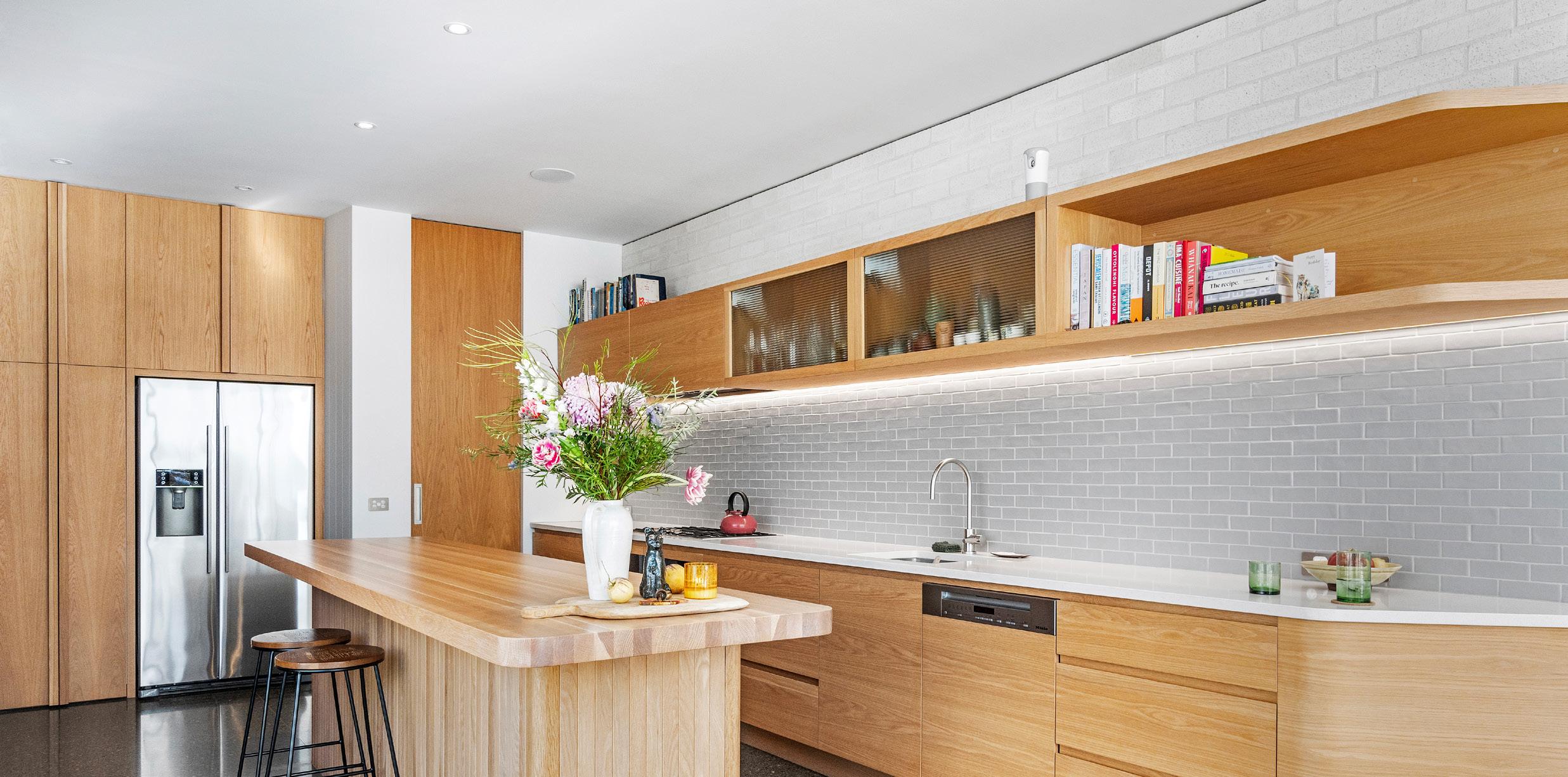 Add a sense of individuality to a clean-lined kitchen with open shelving and artfully display your favourite items. The key is to group pieces together such as your favourite plates alongside elegant glassware, or your favourite cookbooks beside a plant. It’s not a place for clutter, however!