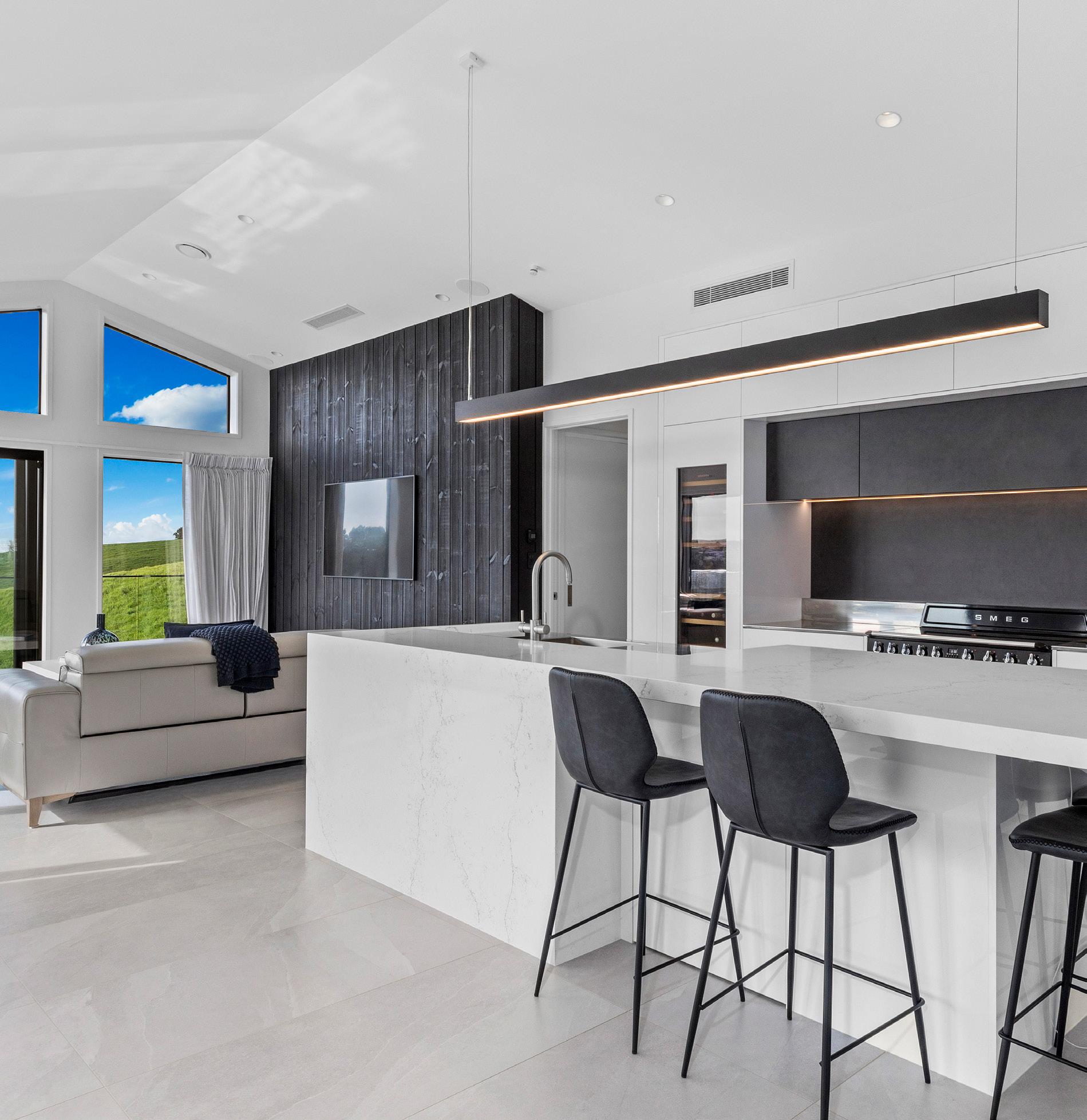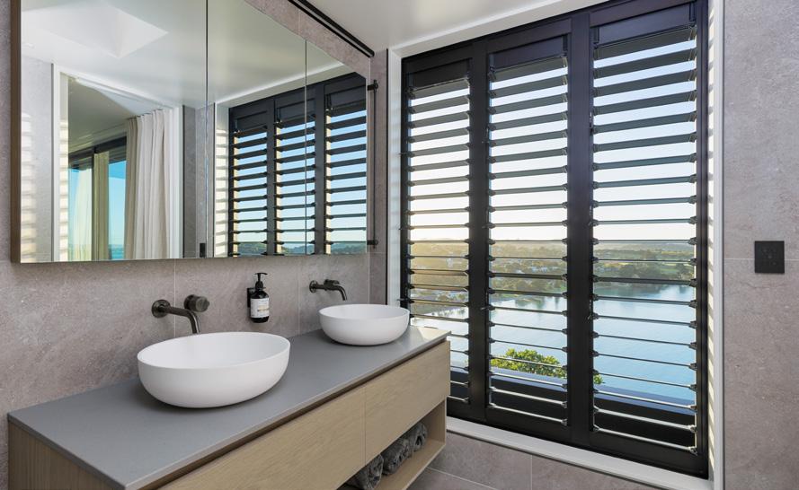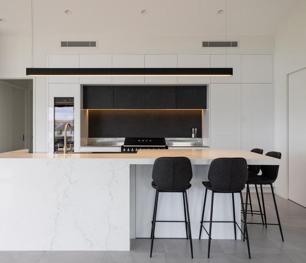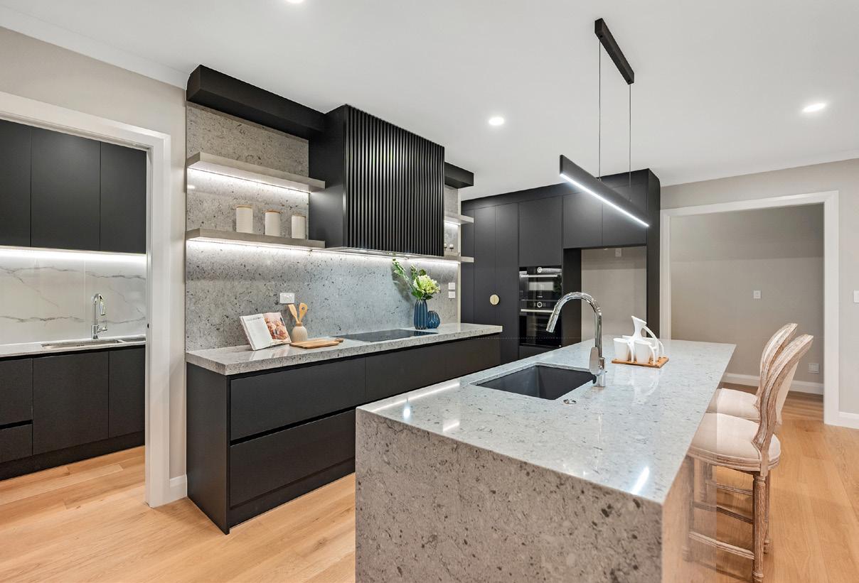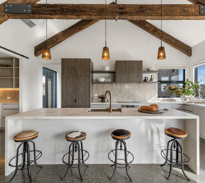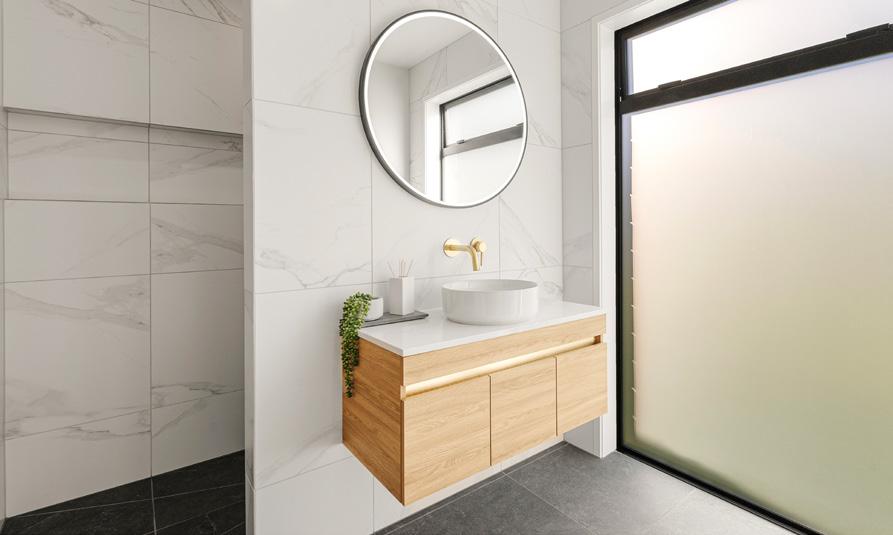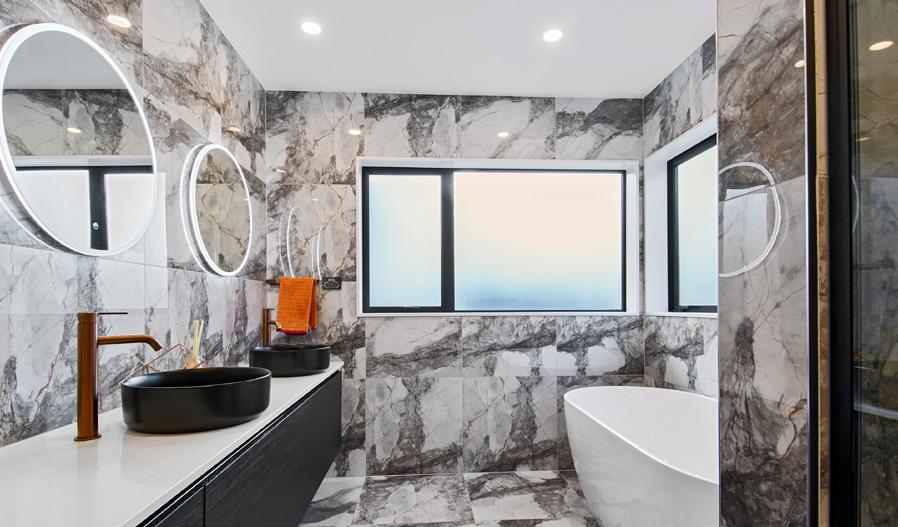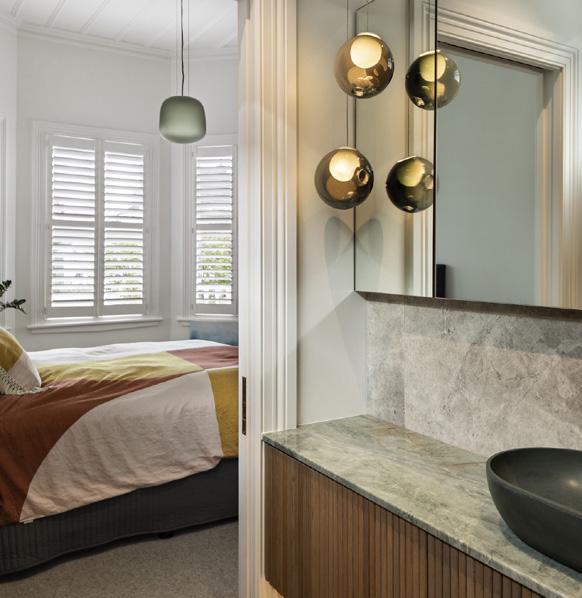 New life was also breathed into the existing side patio, which was given a new timber-framed louvre roof and hanging fireplace. All three bathrooms received the luxe treatment with Venetian-style plaster render and top-ofthe-range cabinetry and tapware. It’s all flawless and opulent now, but this was a highly technical project